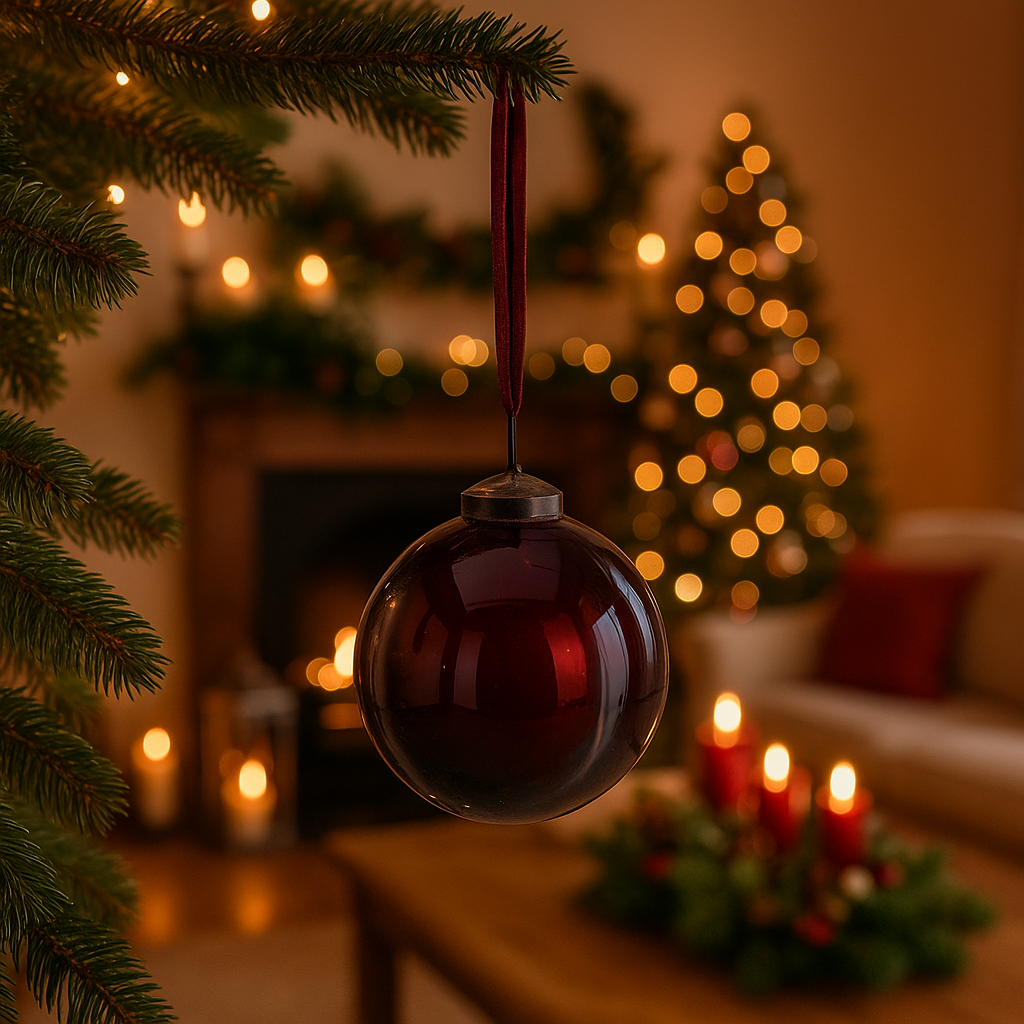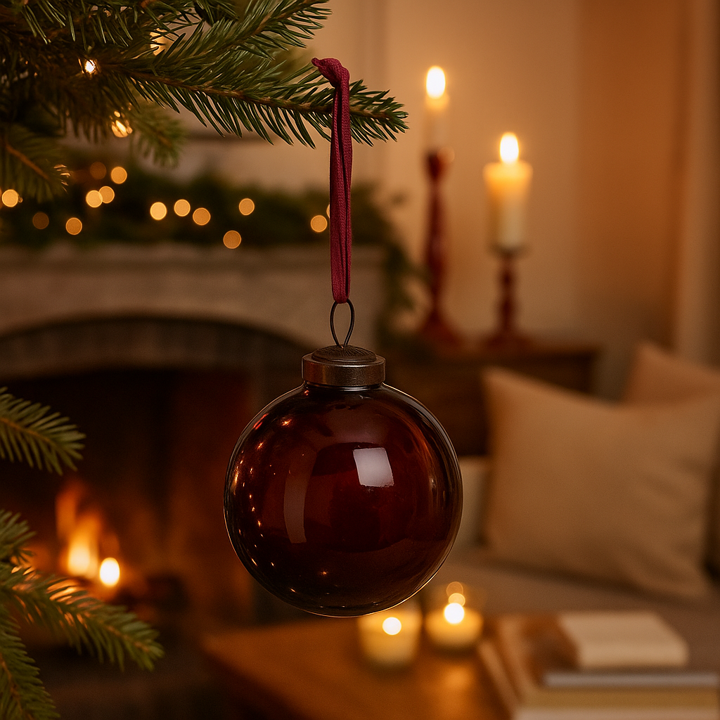 Realizzata interamente in vetro, questa pallina si distingue per la sua finitura liscia e brillante che cattura la luce, creando riflessi luminosi e aggiungendo un tocco di magia all'albero di Natale o a qualsiasi altra decorazione natalizia.