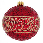 Pallina per albero di Natale in vetro semi-trasparente rosso con motivi floreali dorati da 10 cm