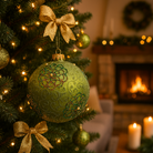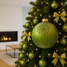 Pallina per albero di Natale in vetro verde sfumato con decorazione floreale da 10 cm