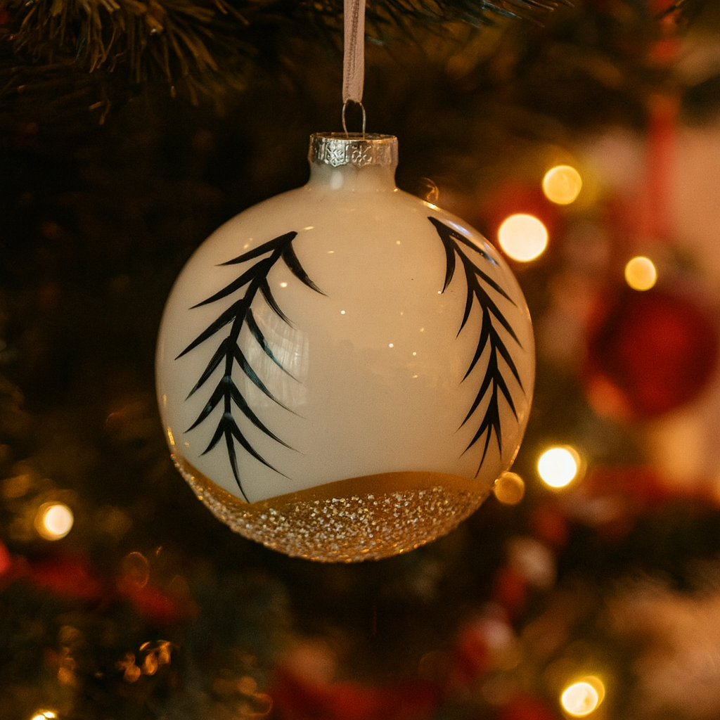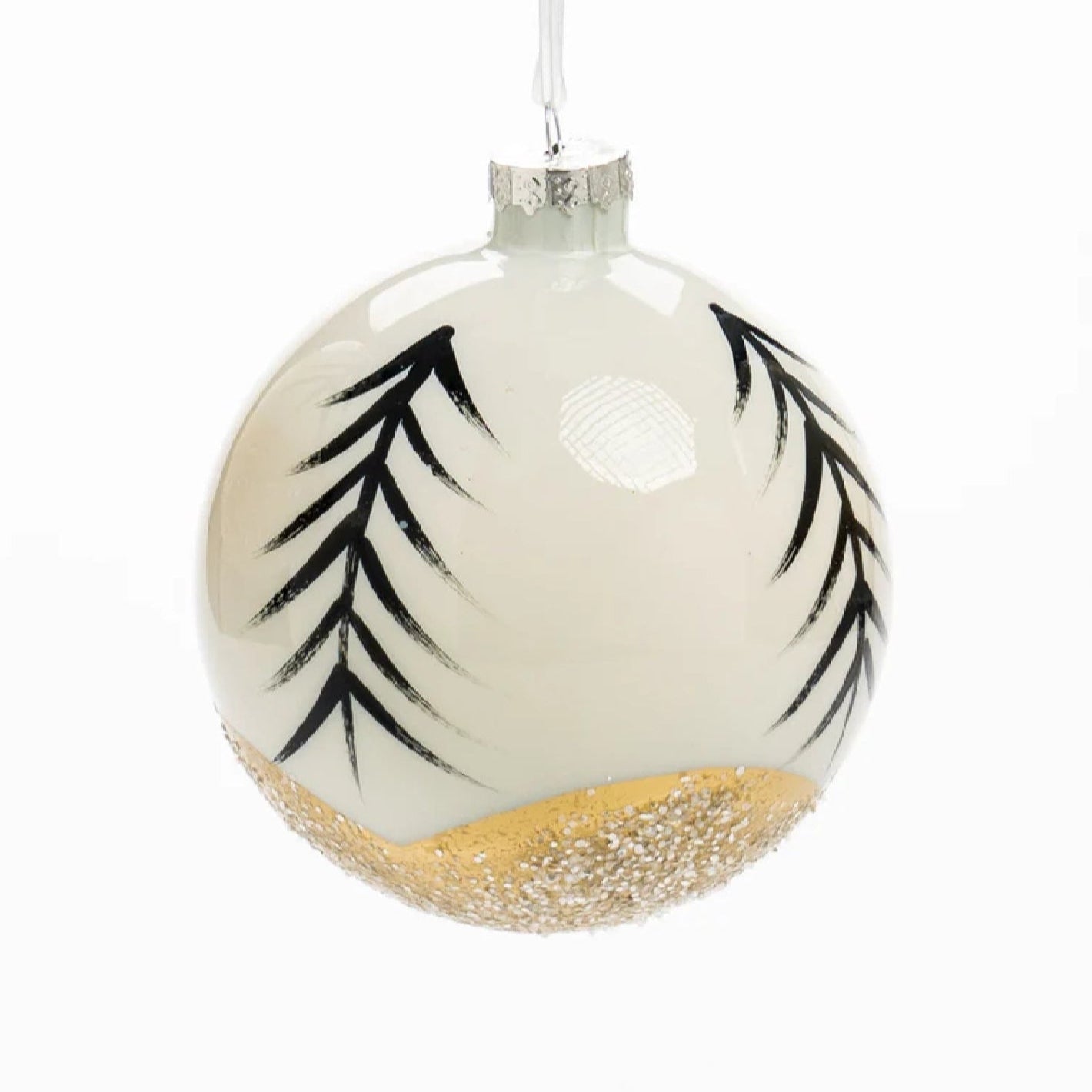 Pallina "Tropical" in vetro colore bianco con foglie per albero di Natale