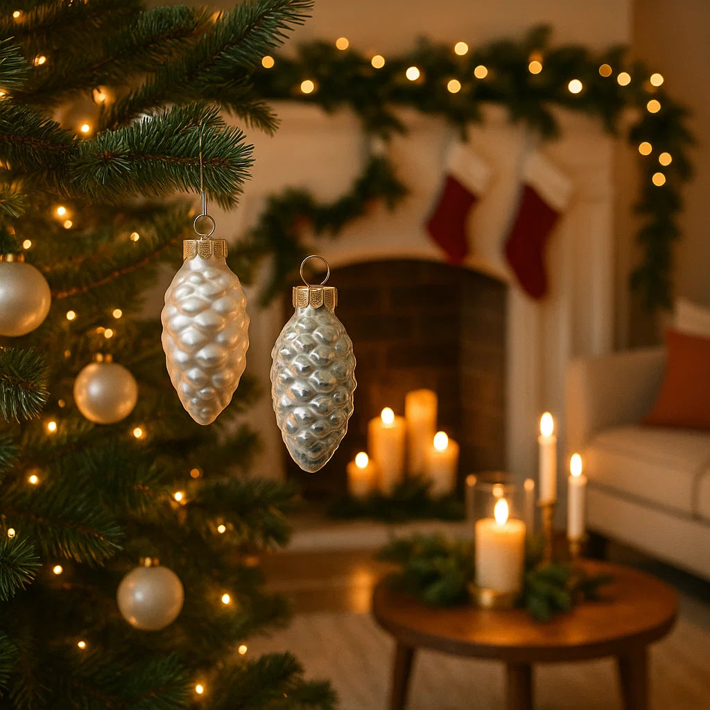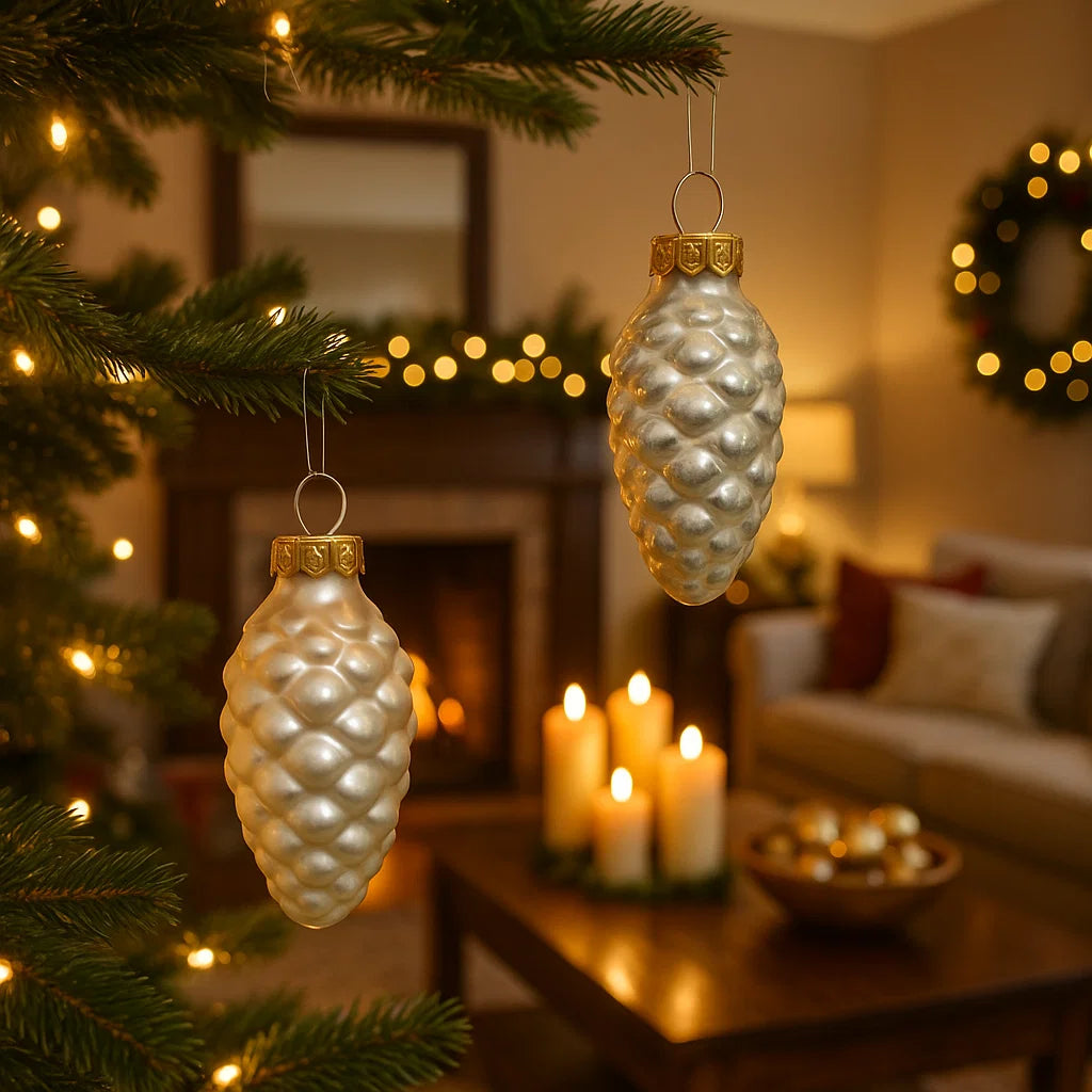 Palline a forma di pigna in vetro per albero champagne, confezione da 12 pezzi
