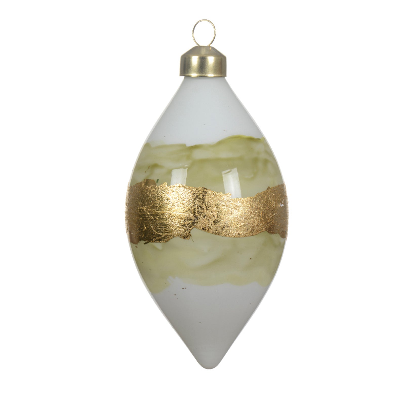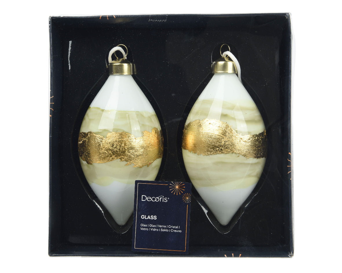 Palline per albero di Natale con forma ovale in vetro bianco e oro decorazione natalizia, 2 pezzi