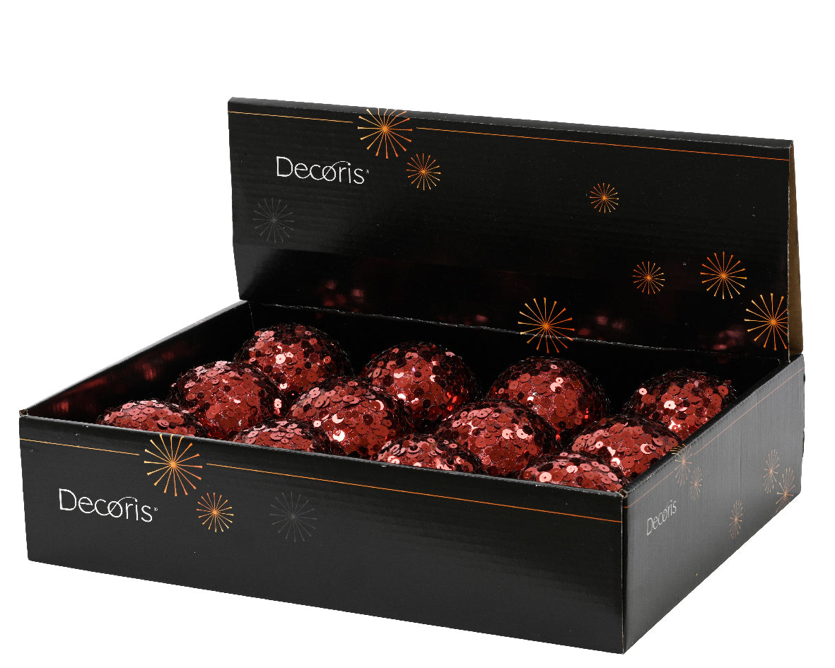 Palline per albero di Natale decorato, colore rosso scuro con paillettes , da Ø 8 cm