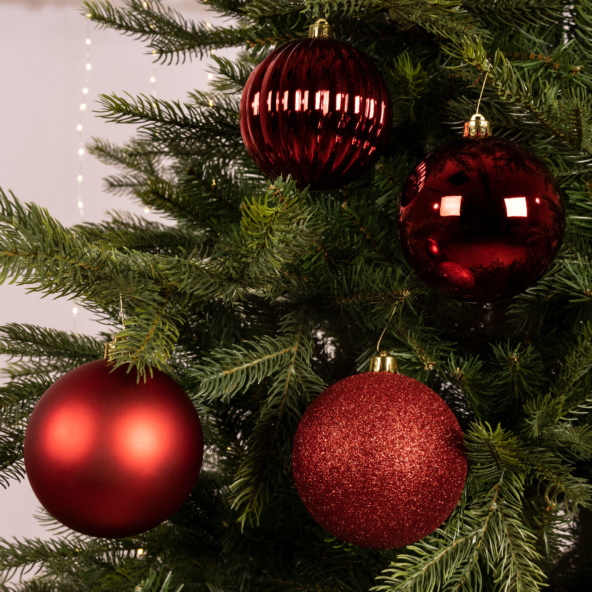 Palline per albero di natale in plastica infrangibile color Rosso Chiaro da 10 cm, tubo da 4 pezzi