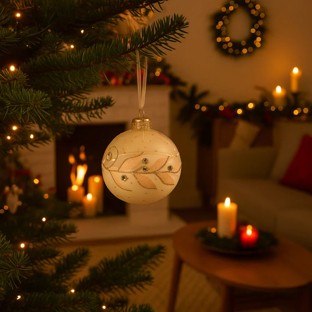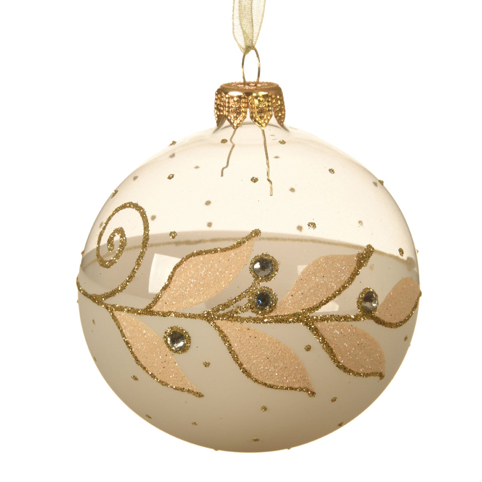 Palline per albero di natale in vetro color Beige con decorazione da 8 cm, confezione da 6 pezzi