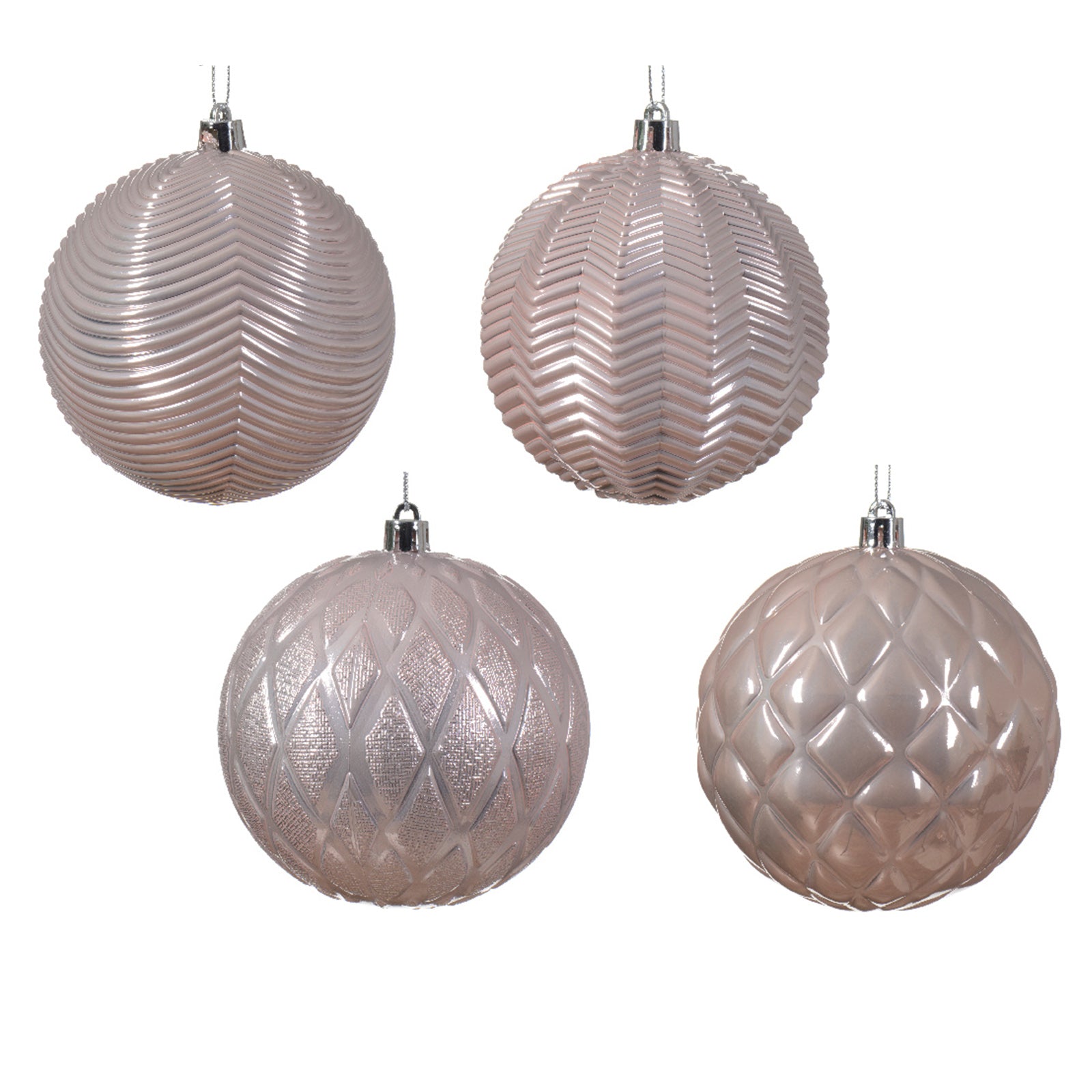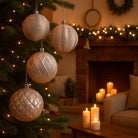 Palline per albero di Natale in vetro color rosa blush decorate da Ø10 cm