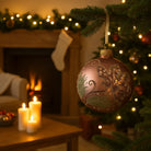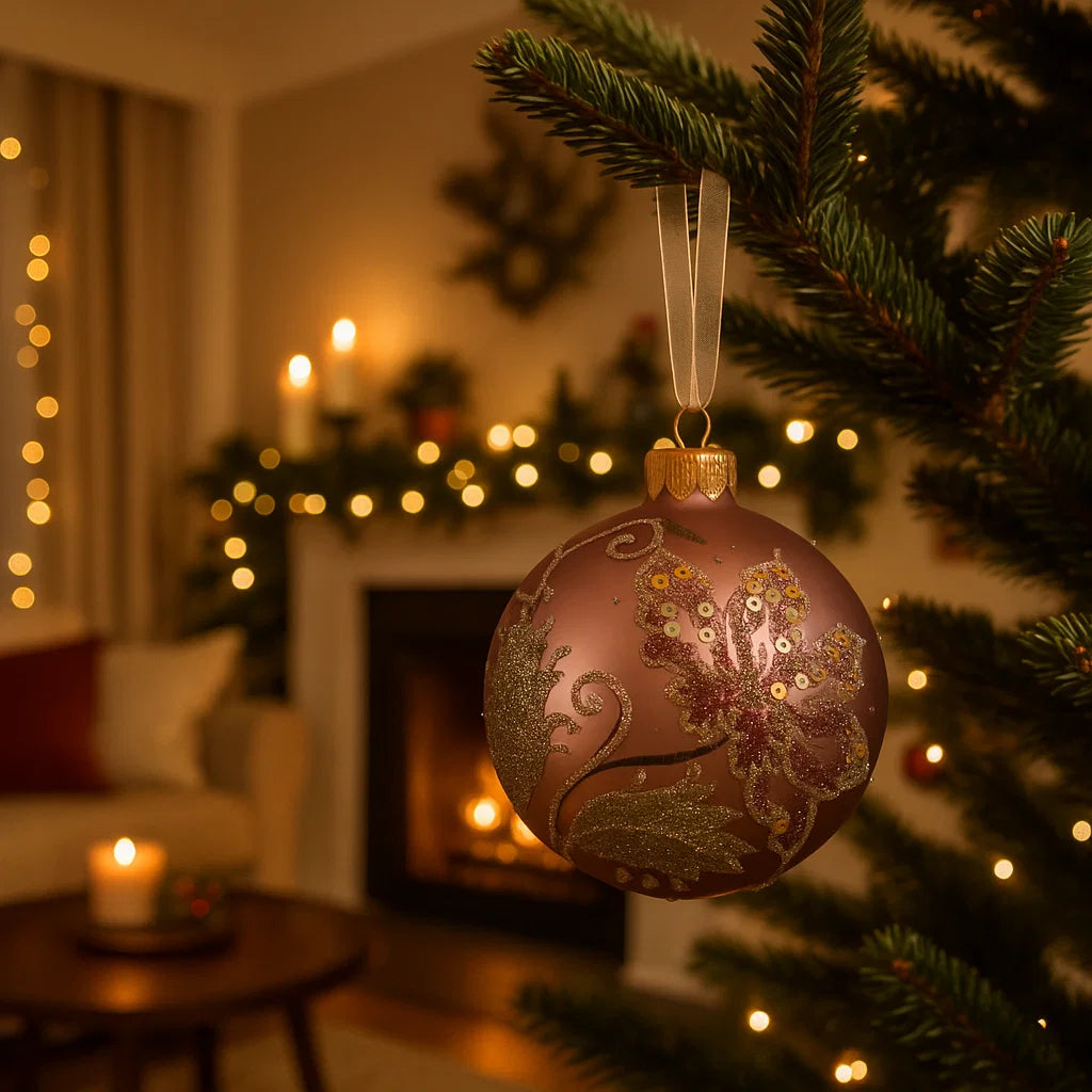 Palline per albero di Natale in vetro color Rosa Velluto con fiori da 8 cm, confezione da 6 pezzi