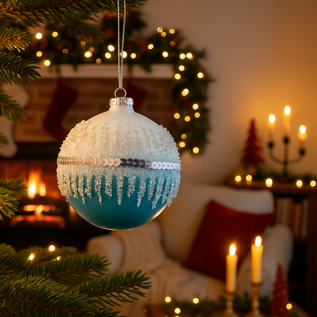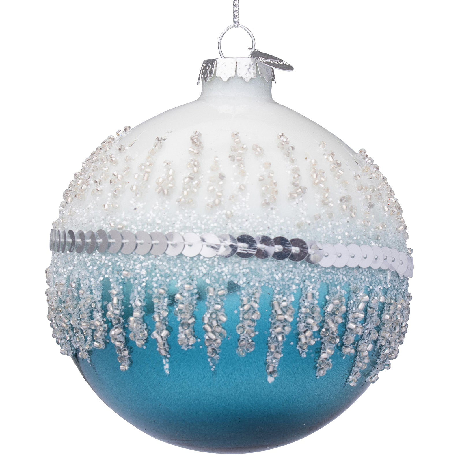 Palline per albero di Natale in vetro decorate color Bianco Azzurro