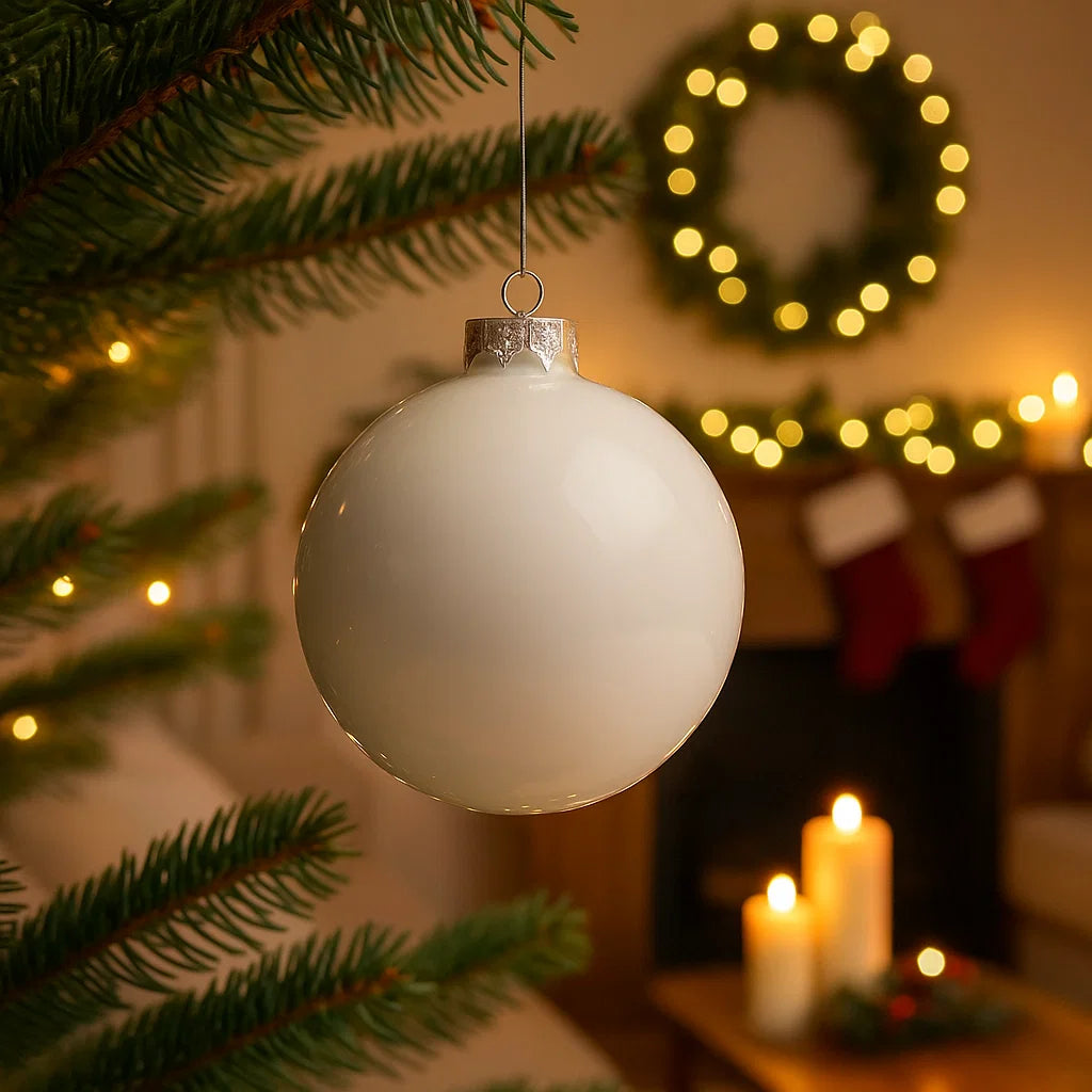 Palline per albero di Natale in vetro decorate color Bianco Inverno Smalto