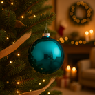 Palline per albero di Natale in vetro decorate color Celeste Puro Lucido