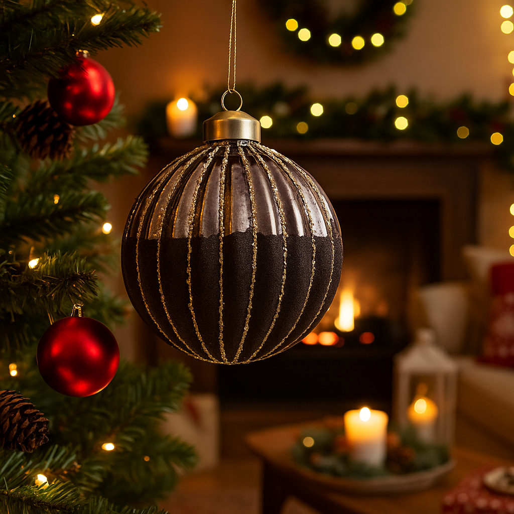 Palline per albero di Natale in vetro decorate color Marrone
