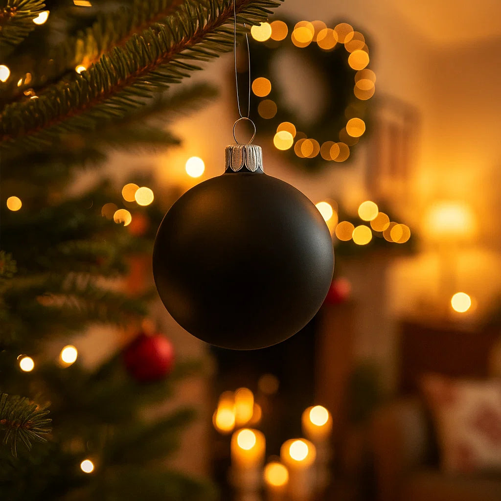 Palline per albero di Natale in vetro decorate color Nero Opaco