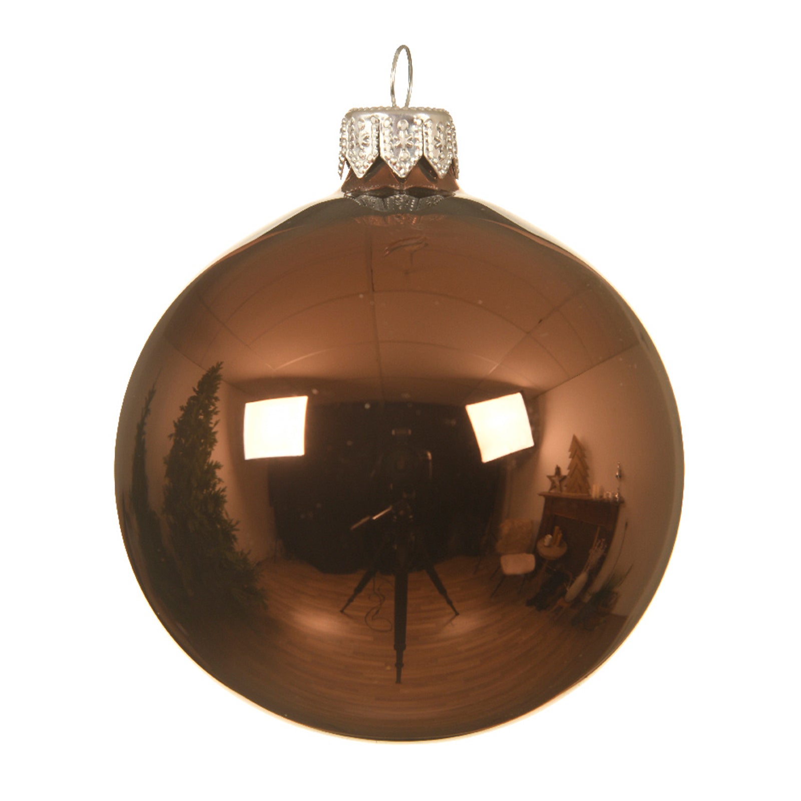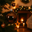 Palline per albero di Natale in vetro decorate color Nocciola lucido