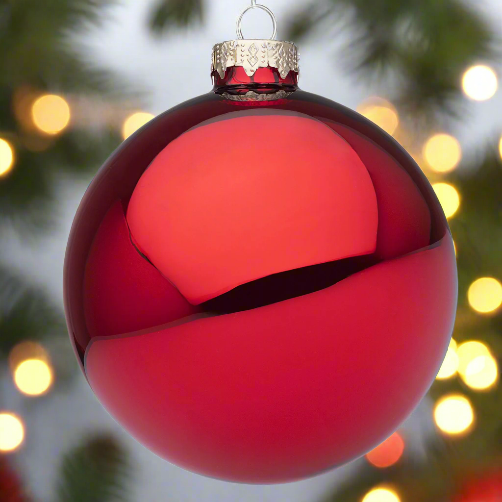 Palline per albero di Natale in vetro decorate color Rosso Granata Lucido