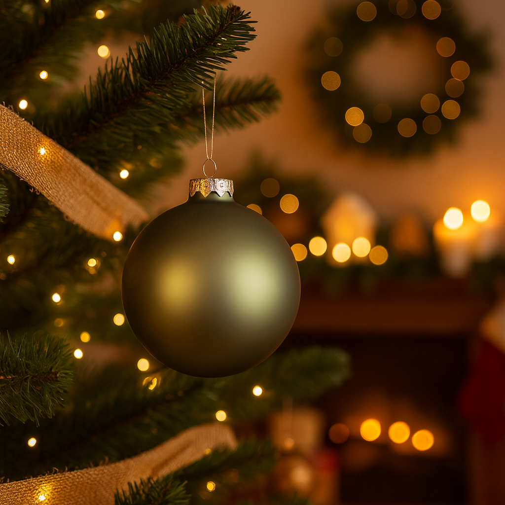 Palline per albero di Natale in vetro decorate color Verde Cinabro Opaco
