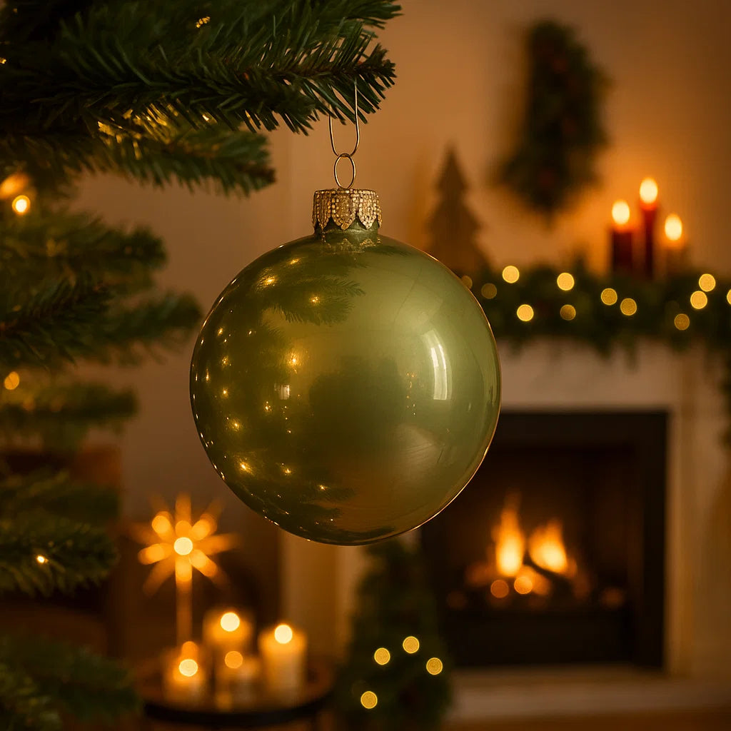 Palline per albero di Natale in vetro decorate color verde pistacchio lucido
