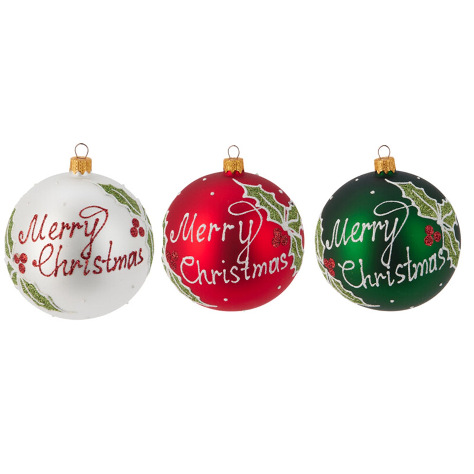 Palline per albero di Natale in vetro decorate tricolore con glitter