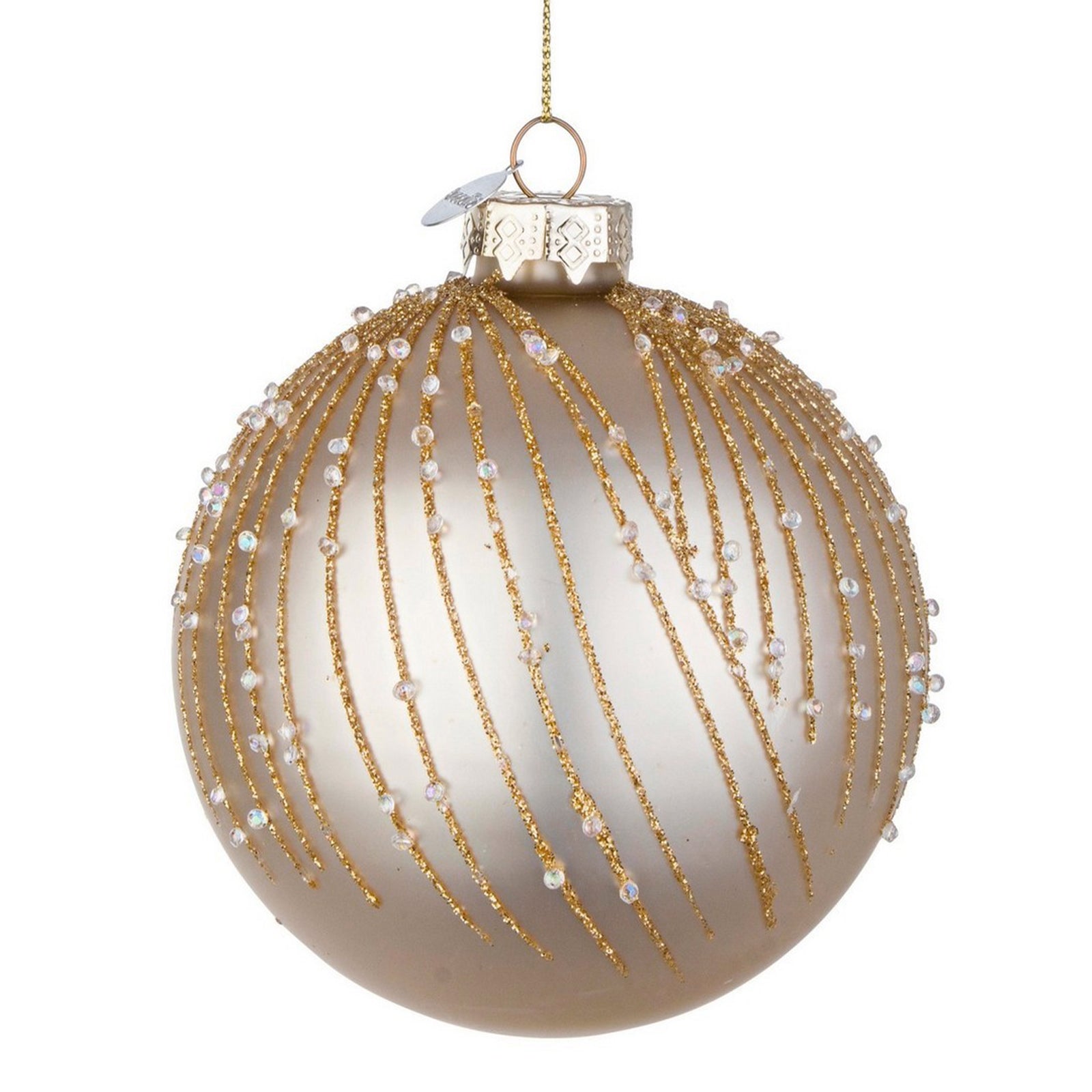 Palline per albero di Natale in vetro e medaglietta decorate color Champagne
