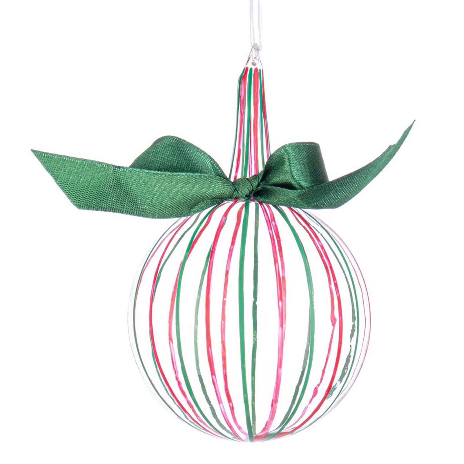 Palline per albero di Natale in vetro trasparente striate con fiocco per decorazione