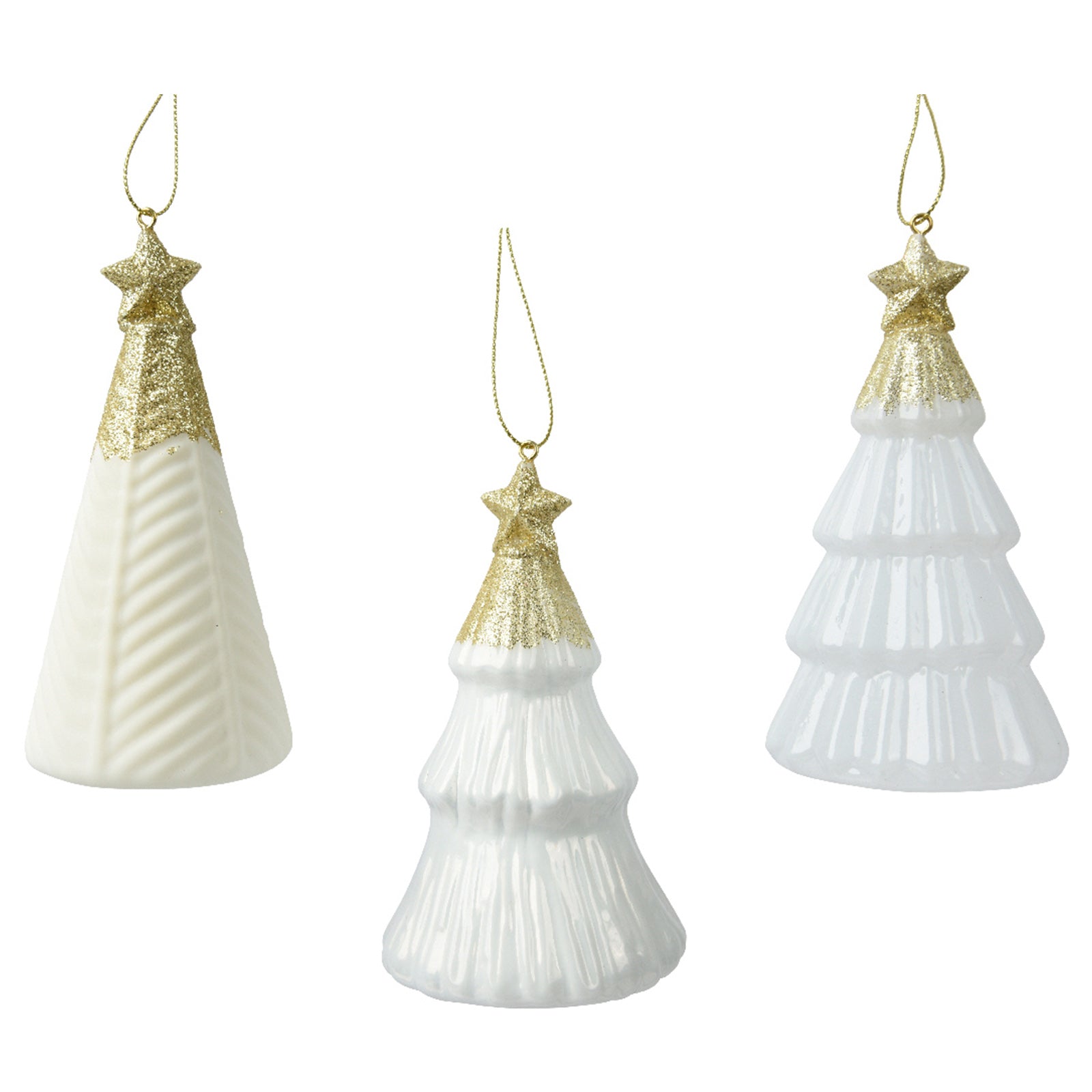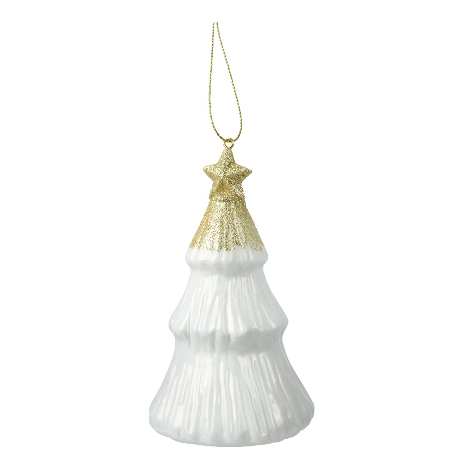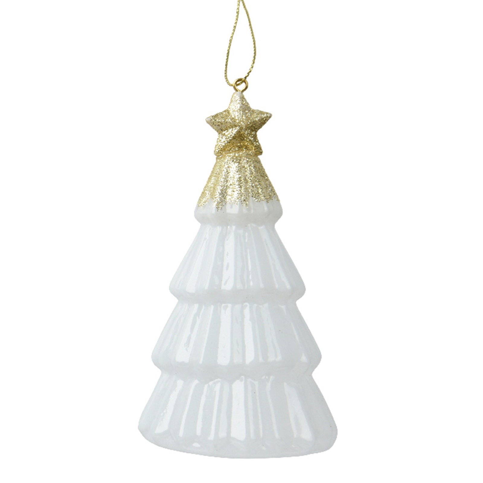 Pendaglio a forma di albero bianco lana con glitter per albero decorazione natalizia da 13 cm