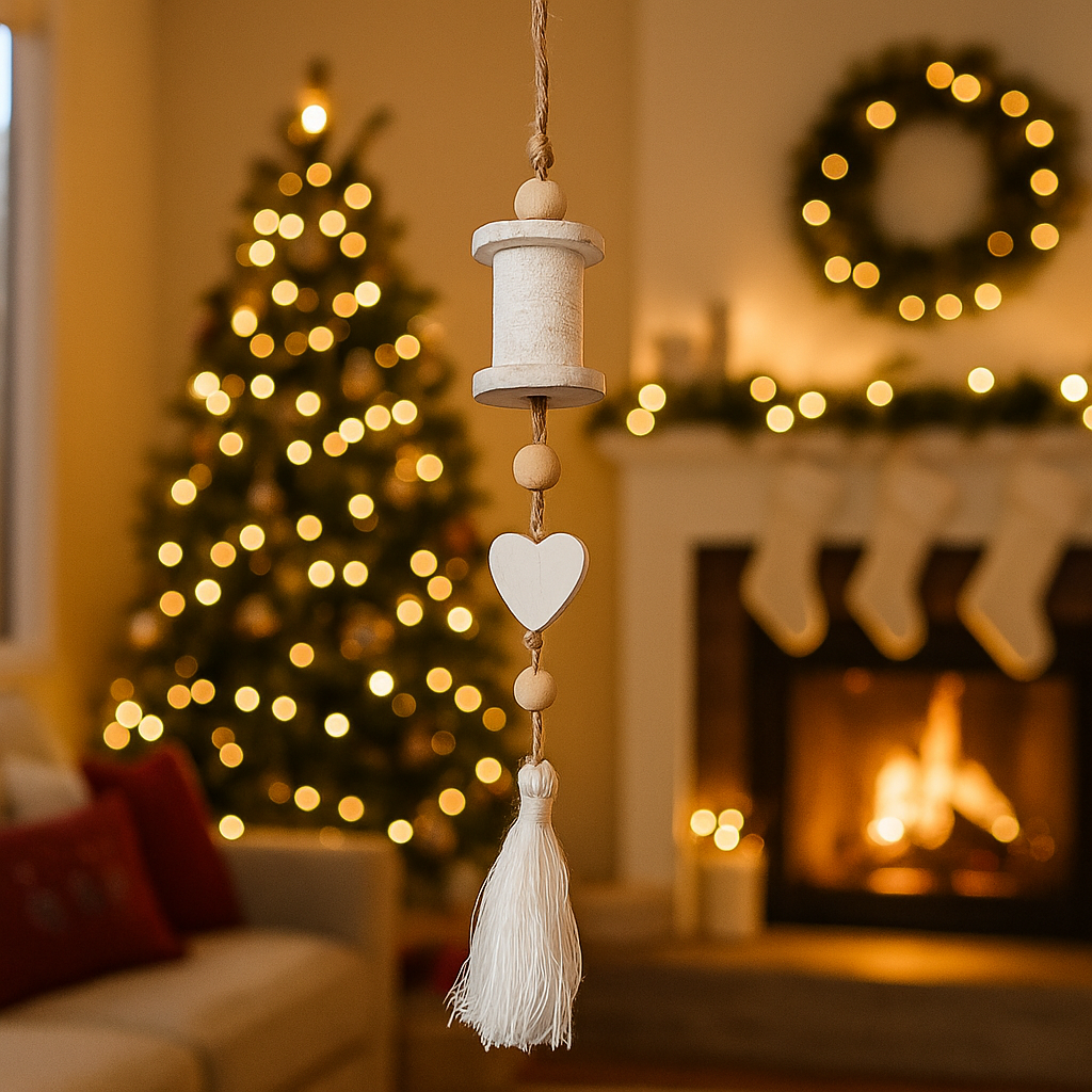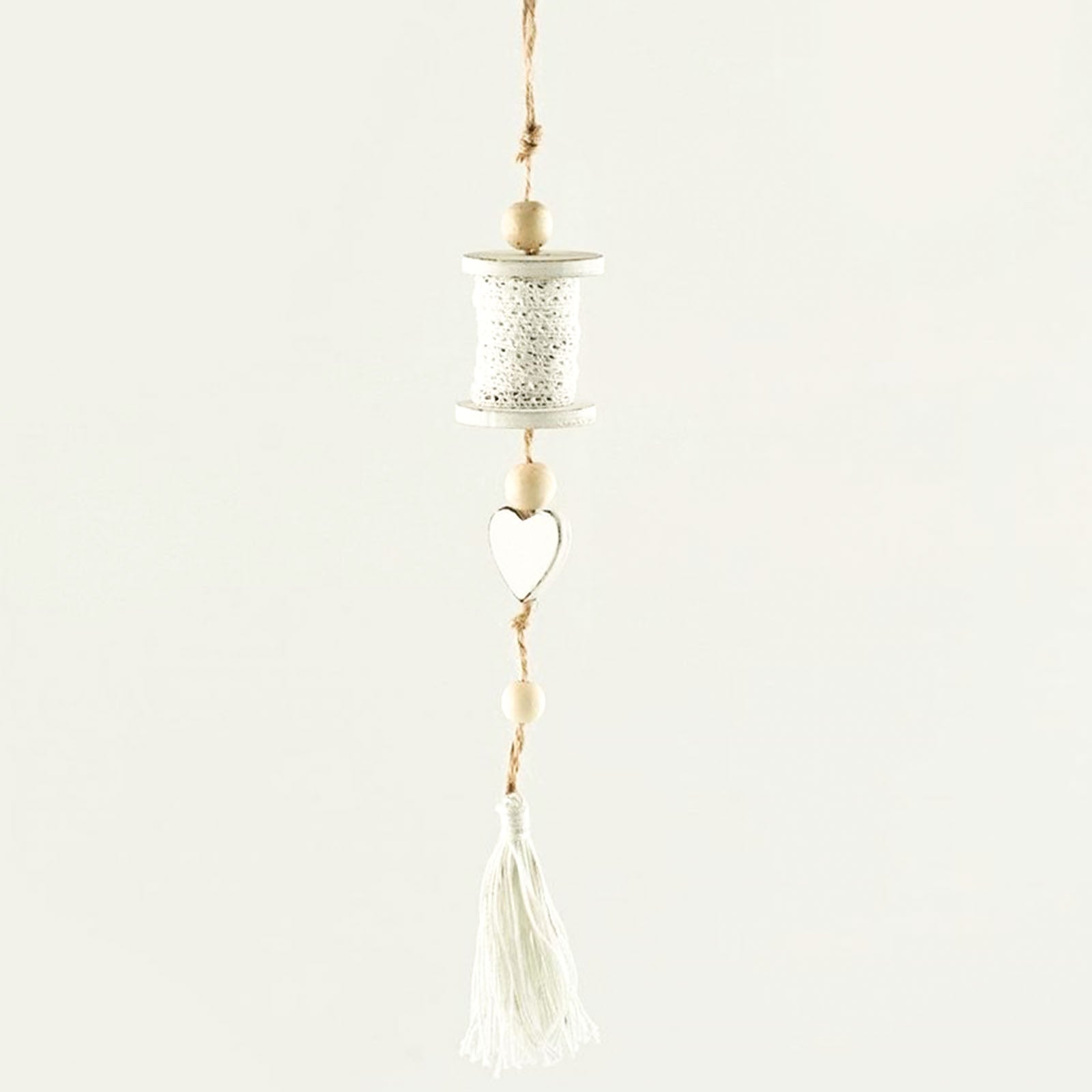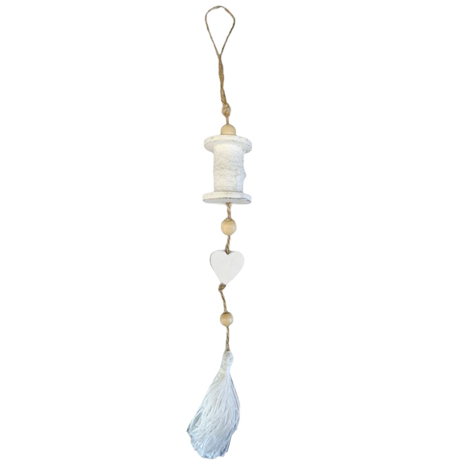 Pendaglio Bianco rocchetto in legno h 35 cm, pallina per Albero di Natale addobbi natalizi