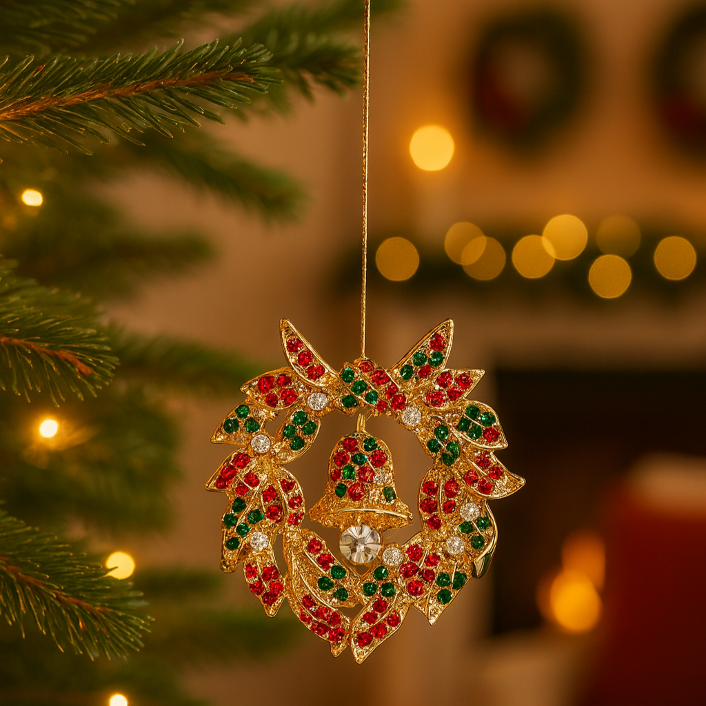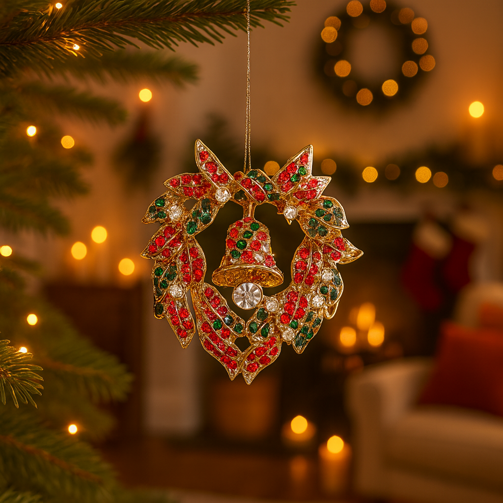 Pendaglio con corona e campana per albero di Natale da 4.5 cm