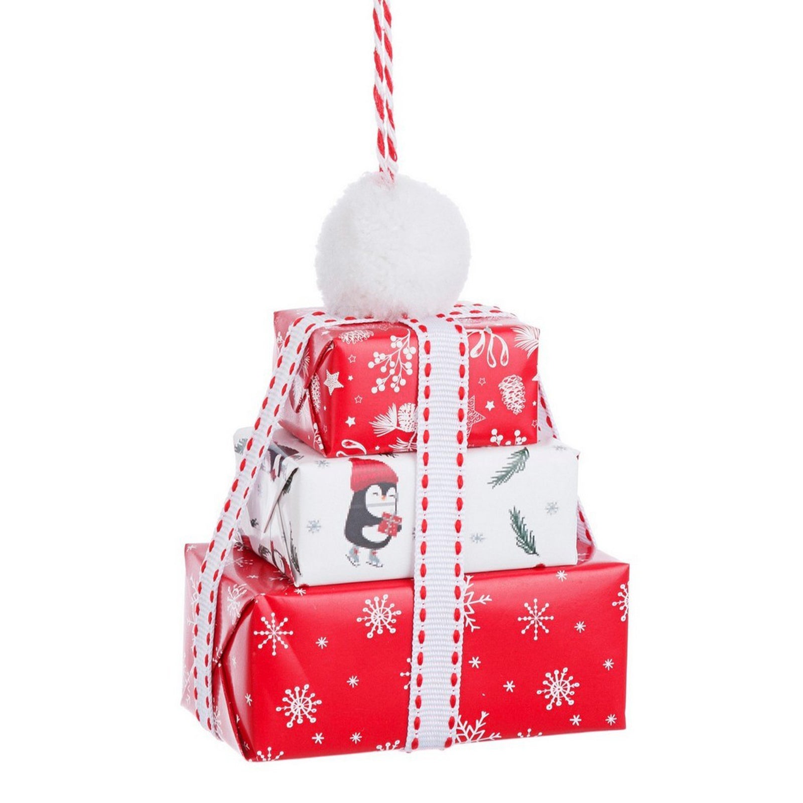 Pendaglio pacco regalo "Chase" per albero di Natale color Bianco e Rosso decorazione natalizia