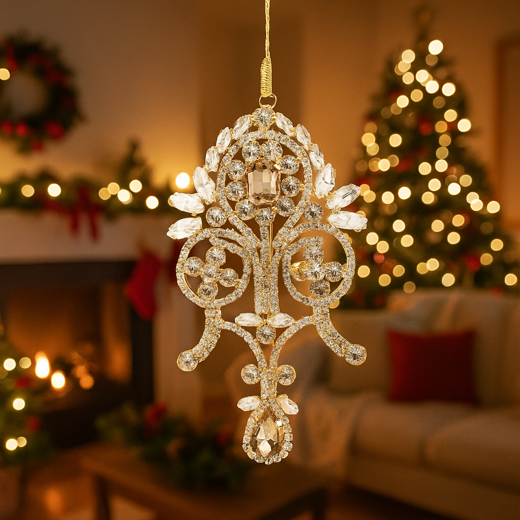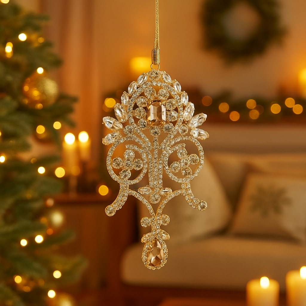 - Pendaglio "Damasco" decorato con gemme, ideale per aggiungere lusso e raffinatezza al tuo albero di Natale.