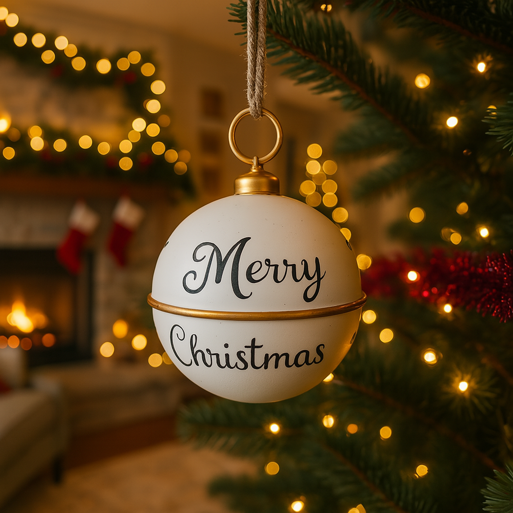 Il bianco permette alla campana di risaltare con discrezione tra i verdi dell’albero o i toni più accesi delle altre decorazioni, creando delicati contrasti che arricchiscono la composizione d’insieme.