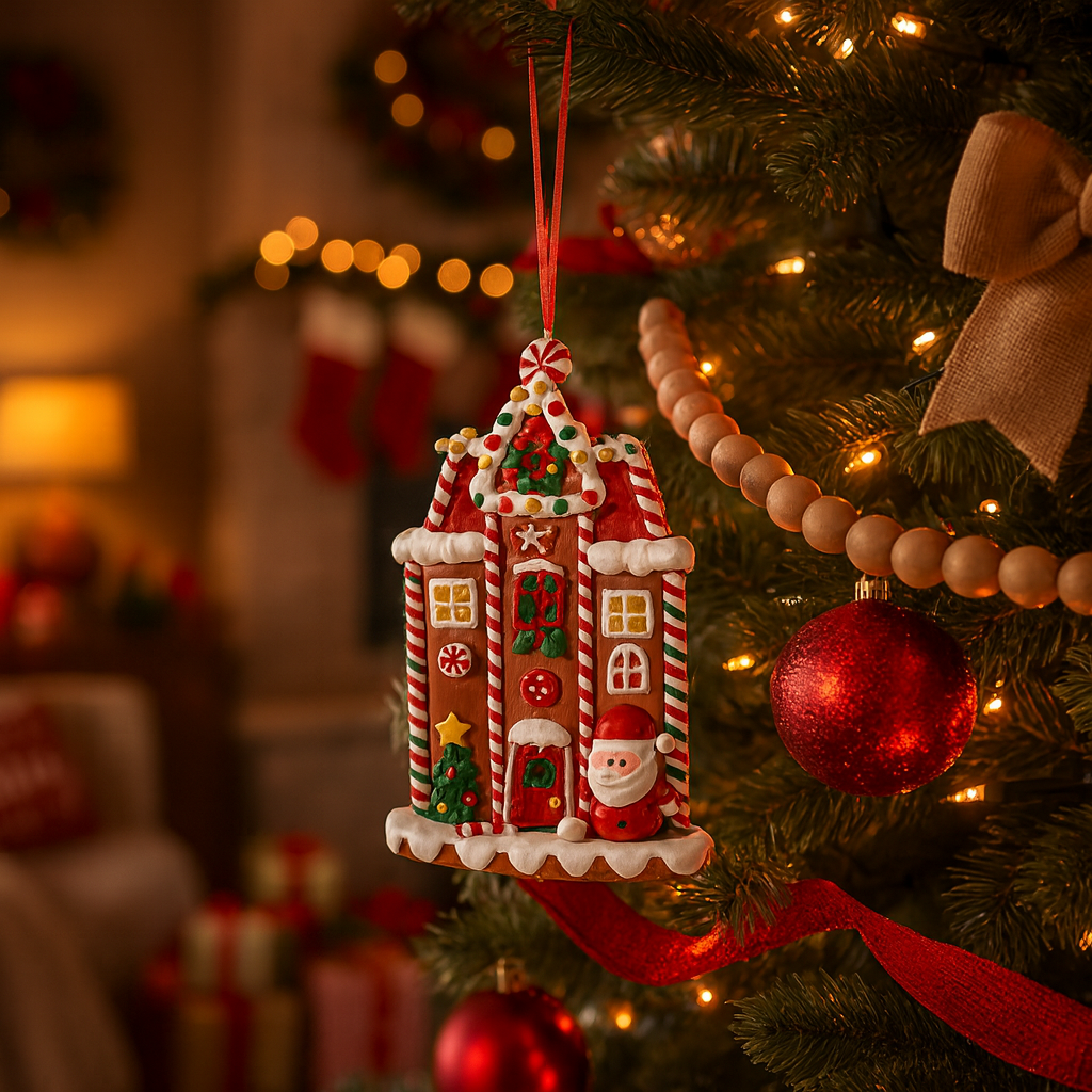 Il pendente a forma di casa natalizia per l'Albero di Natale è un ornamento affascinante e suggestivo, perfetto per arricchire le decorazioni festive con un tocco di calore e magia.