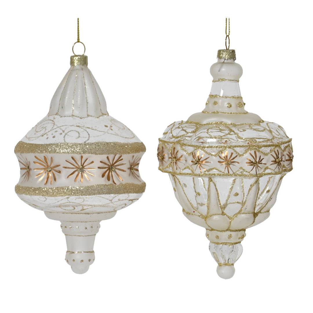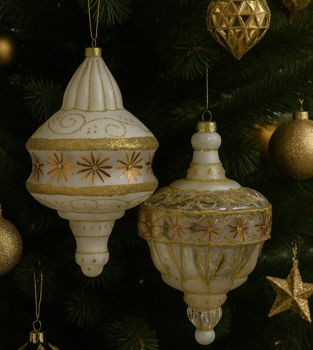 Pendente in vetro bianche con decori oro per albero di Natale da 15 cm, confezione da 2 pezzi