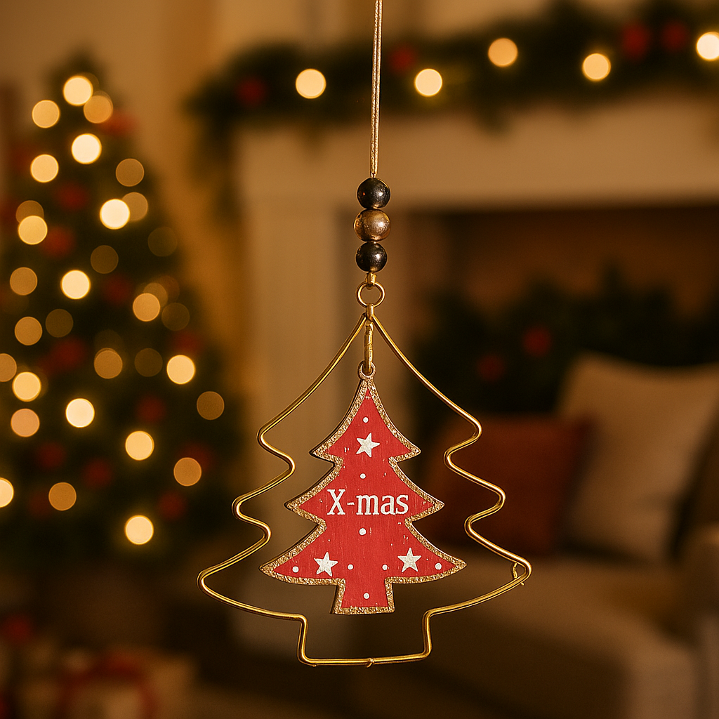 Pendente per albero di Natale laccato in metallo e legno da 11 cm