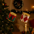 Questa decorazione emula l’aspetto di un tradizionale tamburo, con dettagli che ricordano i modelli classici, rendendola un complemento decorativo particolarmente affascinante per l'albero di Natale o altre aree della casa.