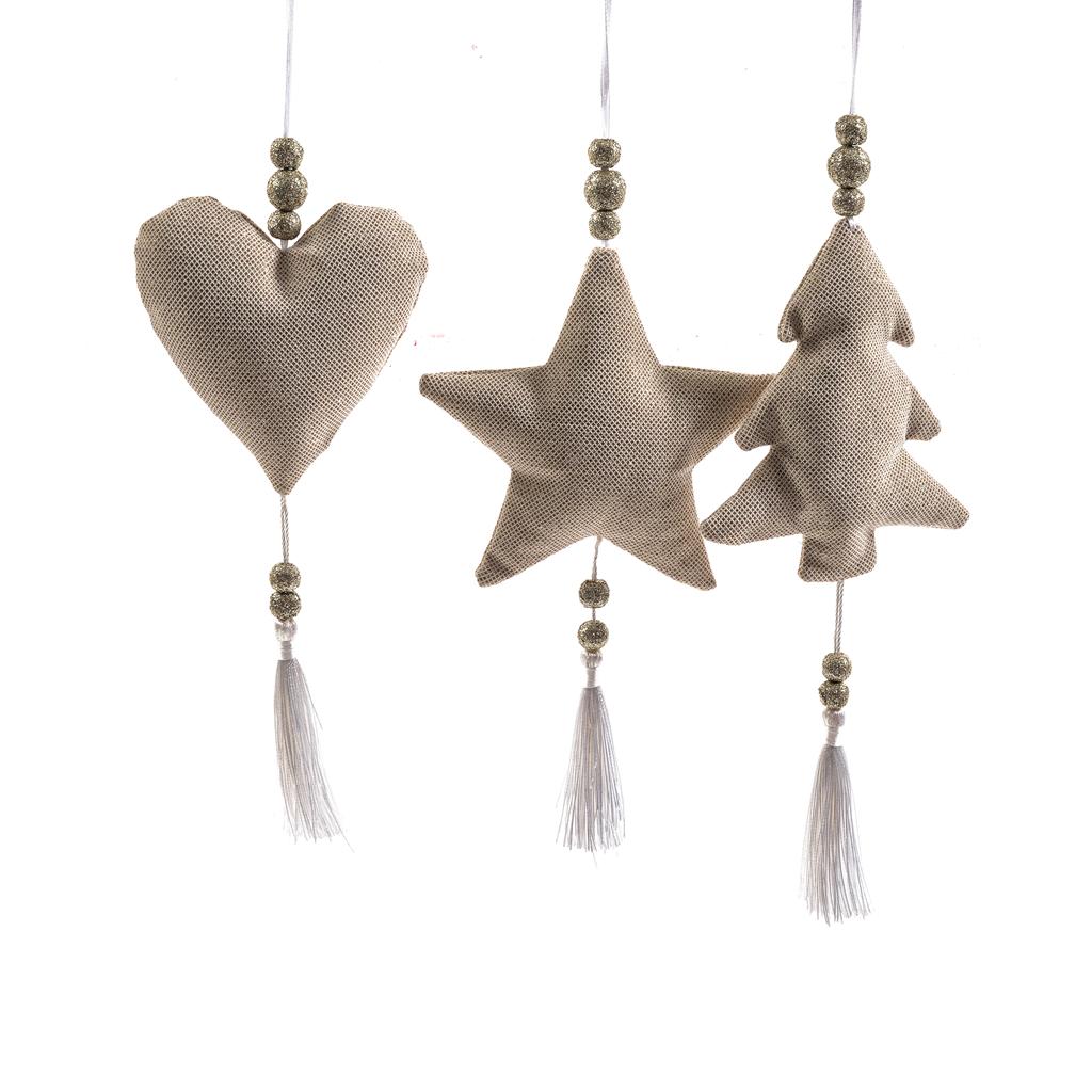 Questi bellissimi pendenti per albero di Natale in tessuto sono l'ideale per decorare l'albero e rendere ancora più magico il clima natalizio. Grazie alla loro dimensione di 14 x h 28 cm, saranno visibili da lontano e attireranno l'attenzione di grandi e piccini.