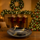Piatto decorato centrotavola "Murble" in vetro per tavola natalizia da 30 cm oro e nero
