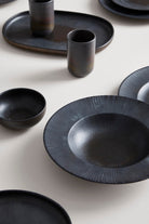 Colore antracite, profondo e versatile, facilmente abbinabile con posate dorate, tovaglie neutre o elementi in legno e ceramica