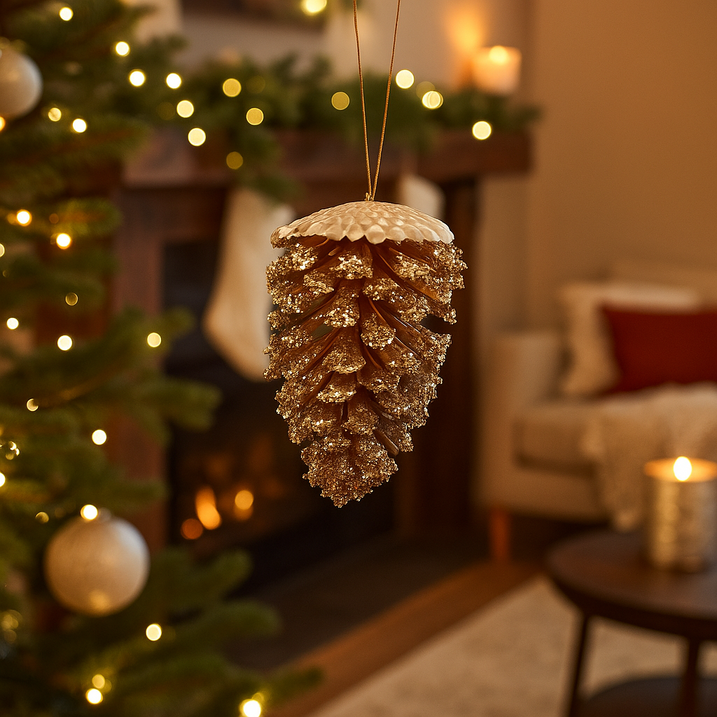 Pigna per albero di natale in PVC color Oro appendibile da 11 cm