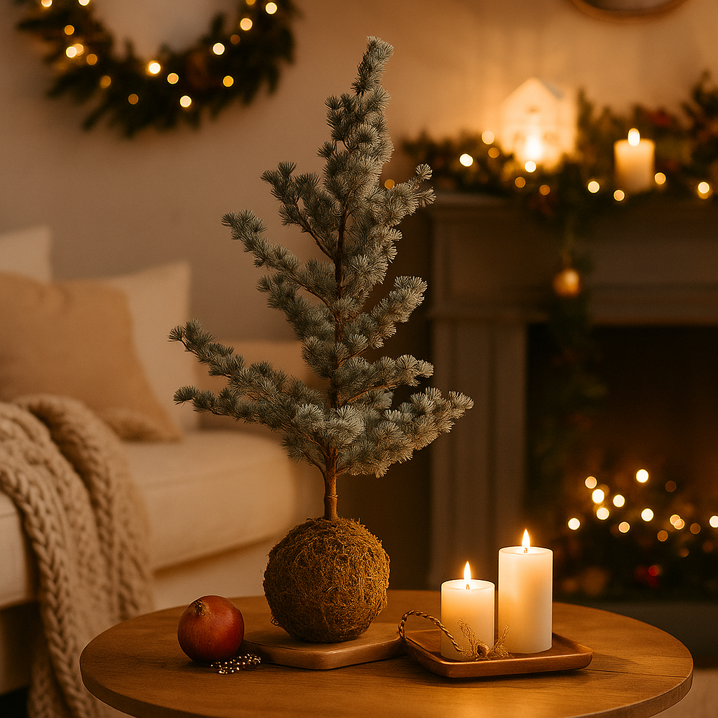 Pino di Natale "Kokedama" ghiacciato decorazione natalizia h 115 cm