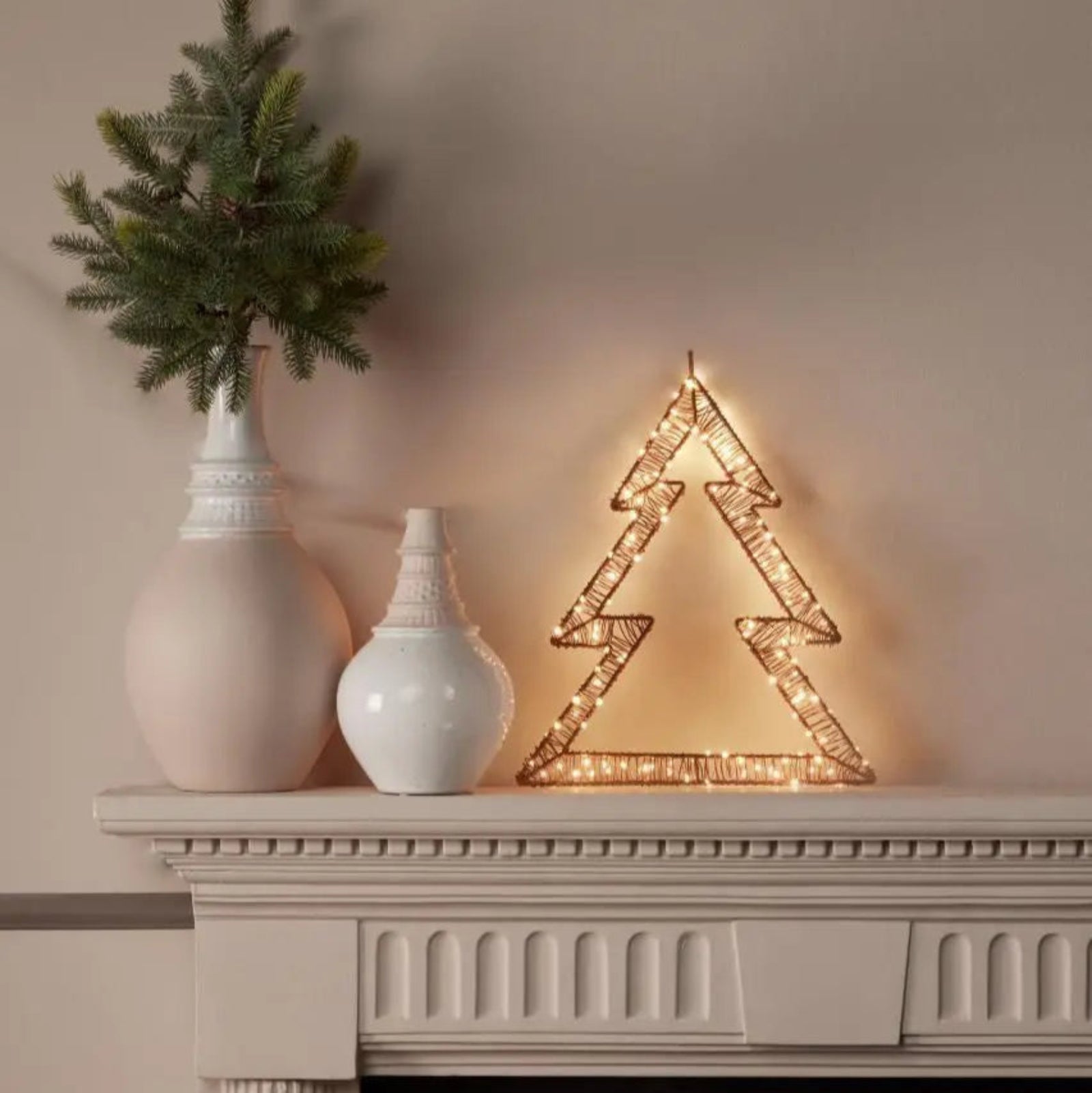 Albero di natale in metallo con luci LED calde per decorazioni natalizie