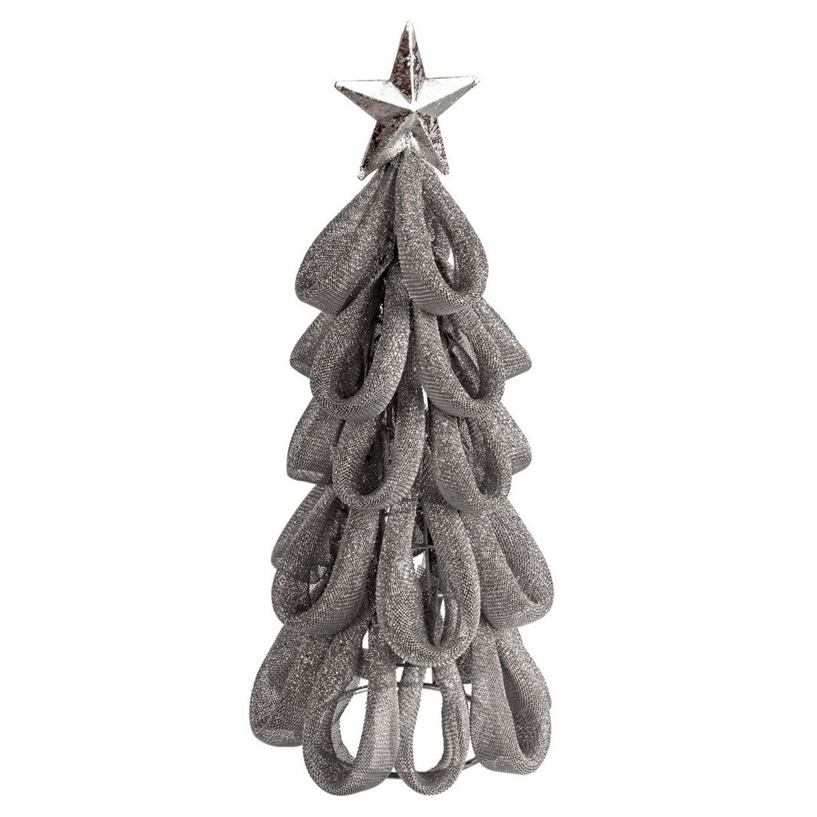 Il pino "Ring" in metallo color argento è un ornamento natalizio elegante e moderno, progettato per aggiungere un tocco di sofisticazione e luminosità alle decorazioni festive.