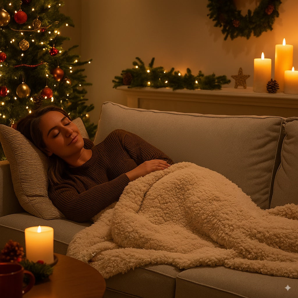 Il design natalizio del plaid può includere motivi tradizionali come renne, alberi di Natale, fiocchi di neve o Babbo Natale, intrecciati in un tema coordinato che cattura lo spirito delle feste.