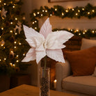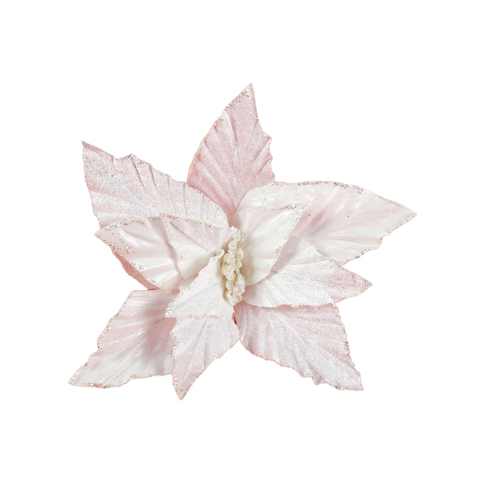 Poinsetta laminata colore bianco per decorazioni e composizioni h 32 cm