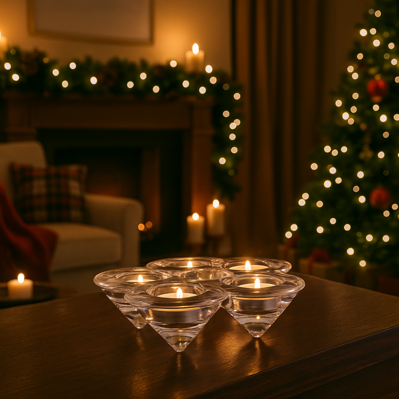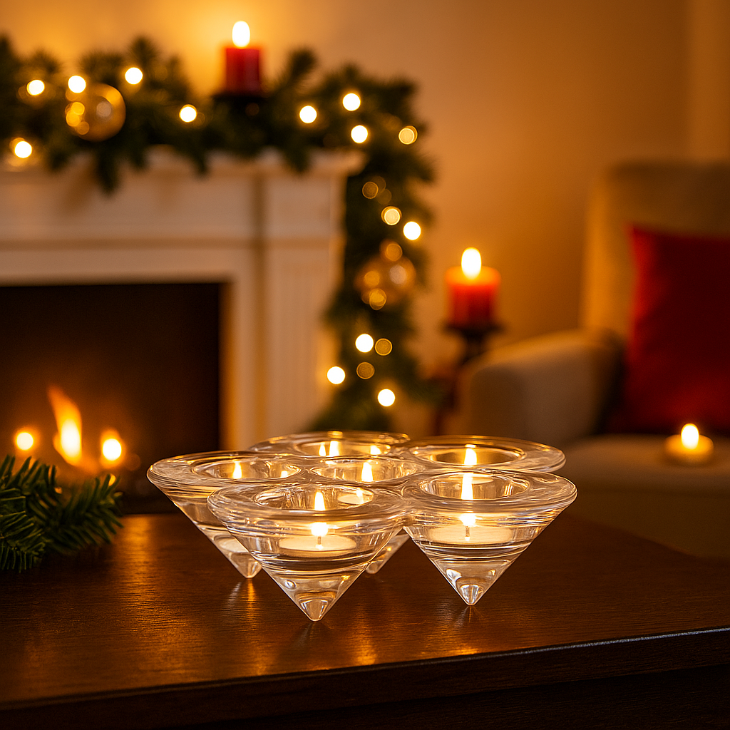 Portacandela con 6 posti in vetro trasparente da 18 cm per interno