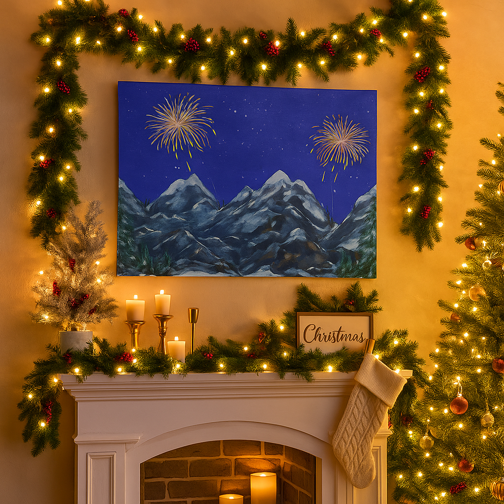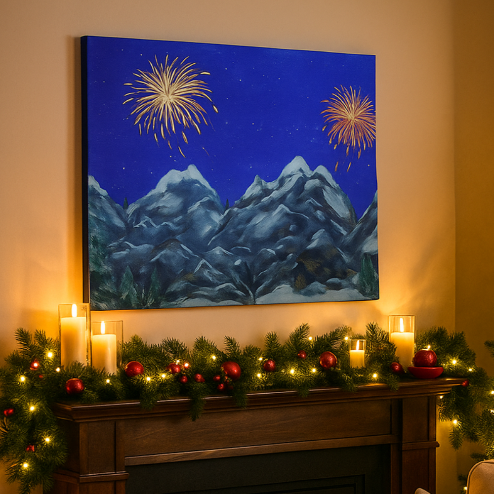 Porta la magia delle festività nella tua casa con il poster tela illuminato effetto fuochi d'artificio da 76 x 56 cm.