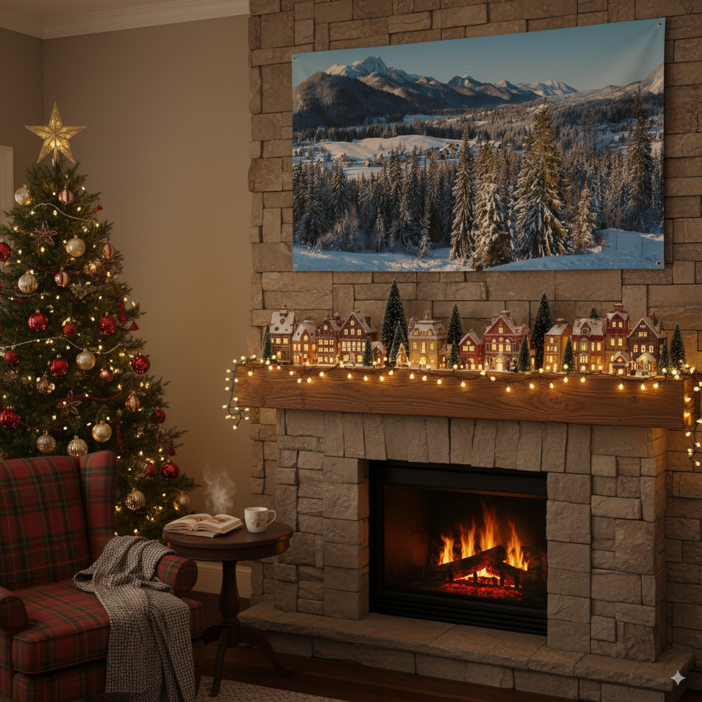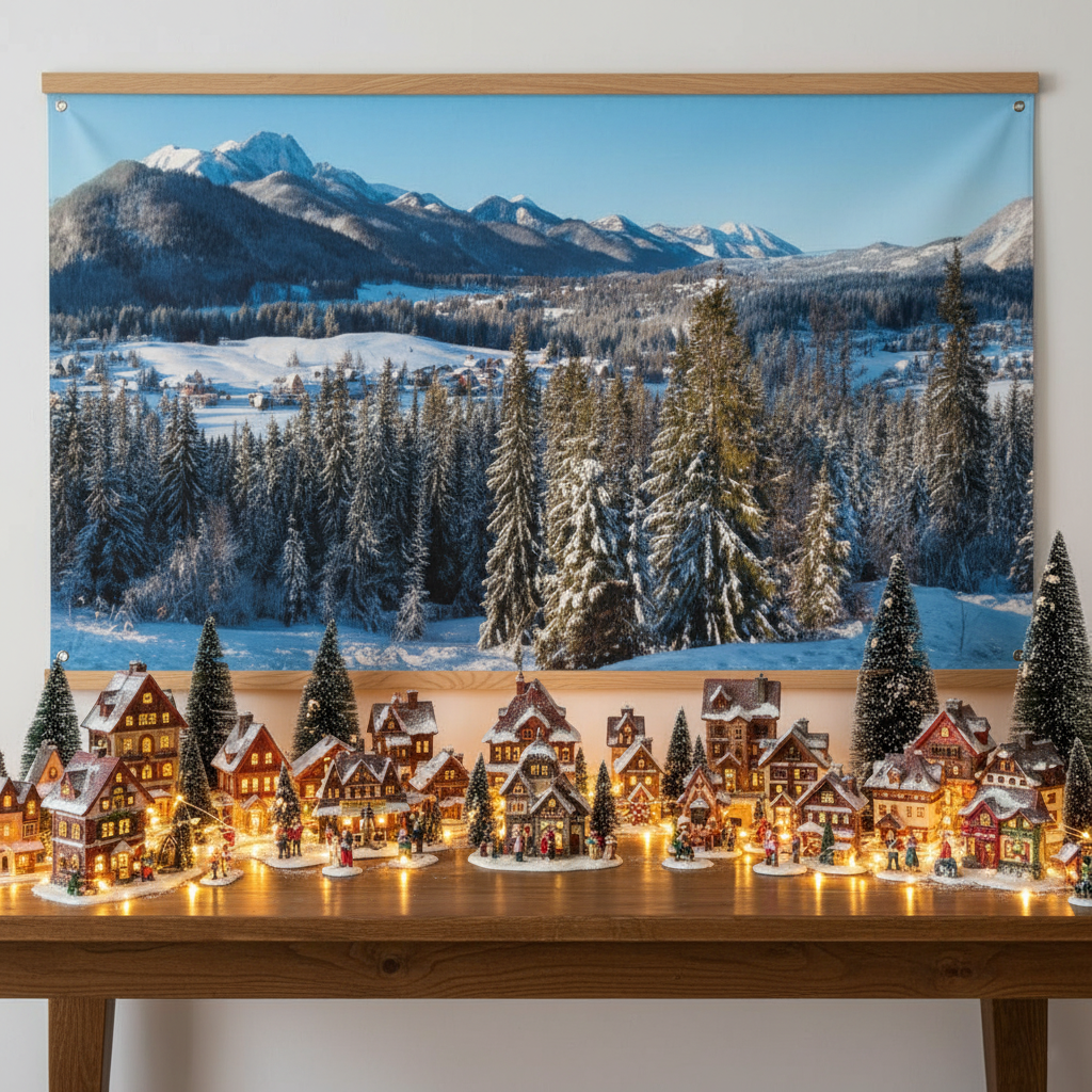 Poster in tessuto "Villaggio invernale" per villaggi Natalizi