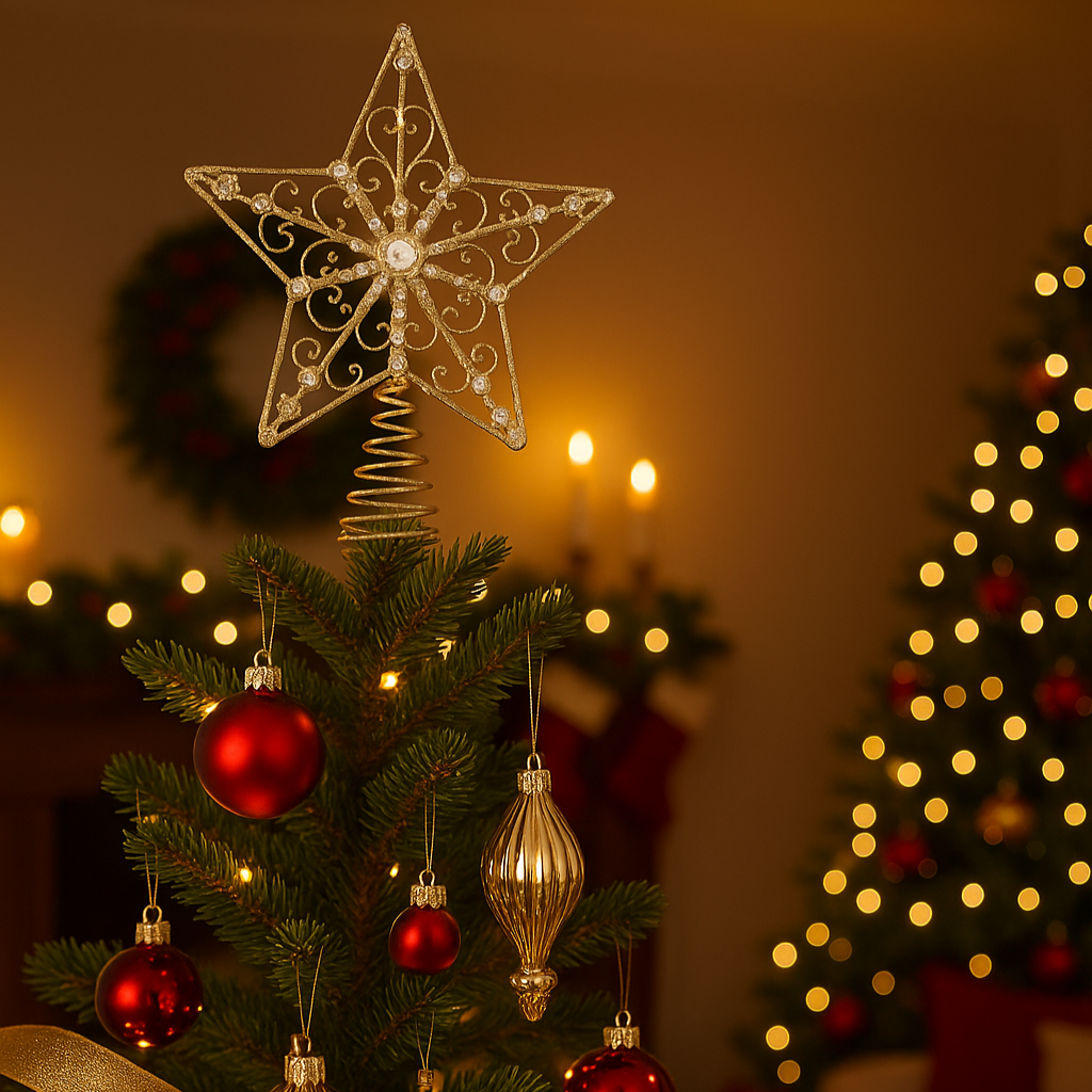 Puntale stella luminosa per albero di natale con led per decorazioni
