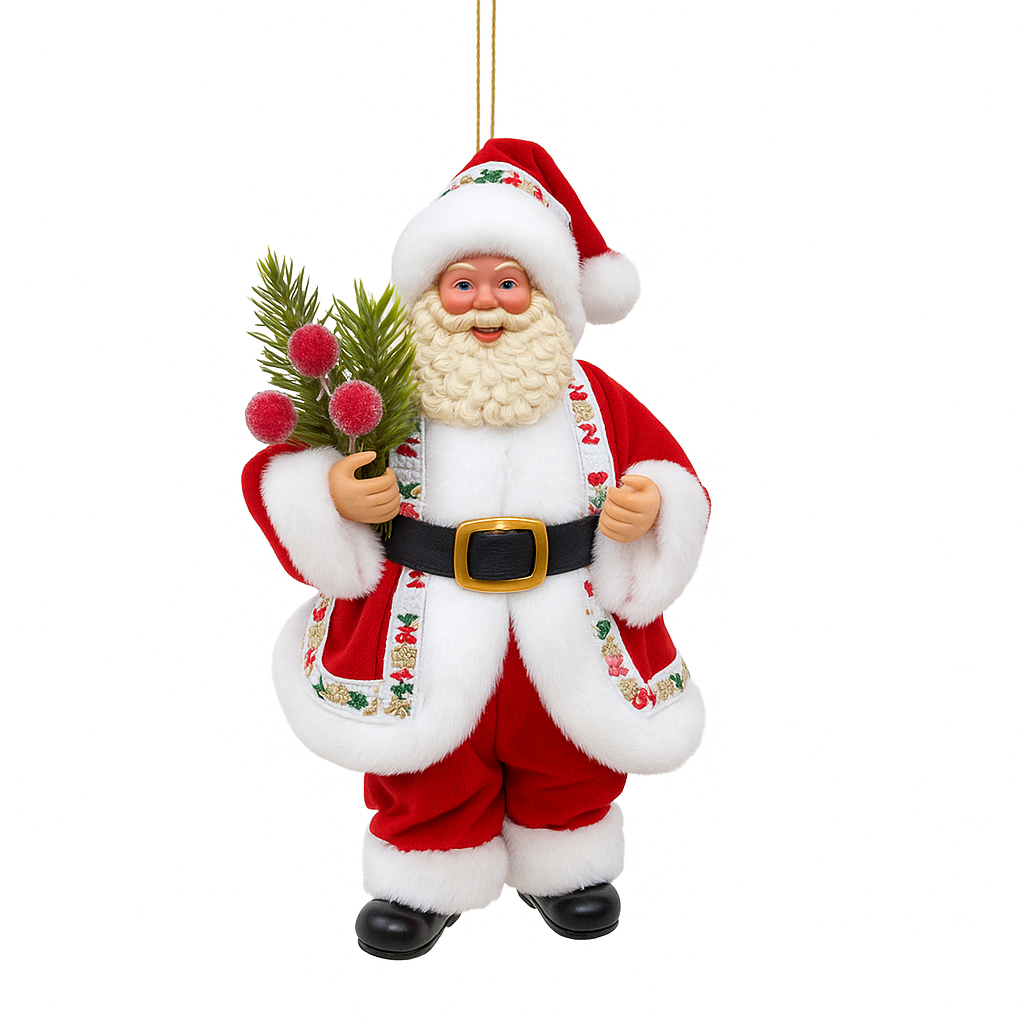 Questo Babbo Natale appendibile alto 18 cm, è una decorazione natalizia che cattura perfettamente lo spirito tradizionale delle feste, unendo un tocco rustico e familiare alla figura più iconica del Natale.