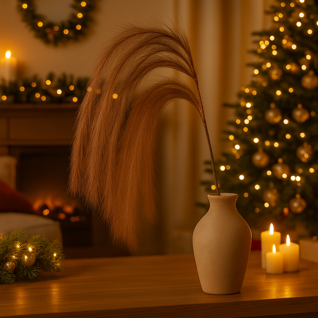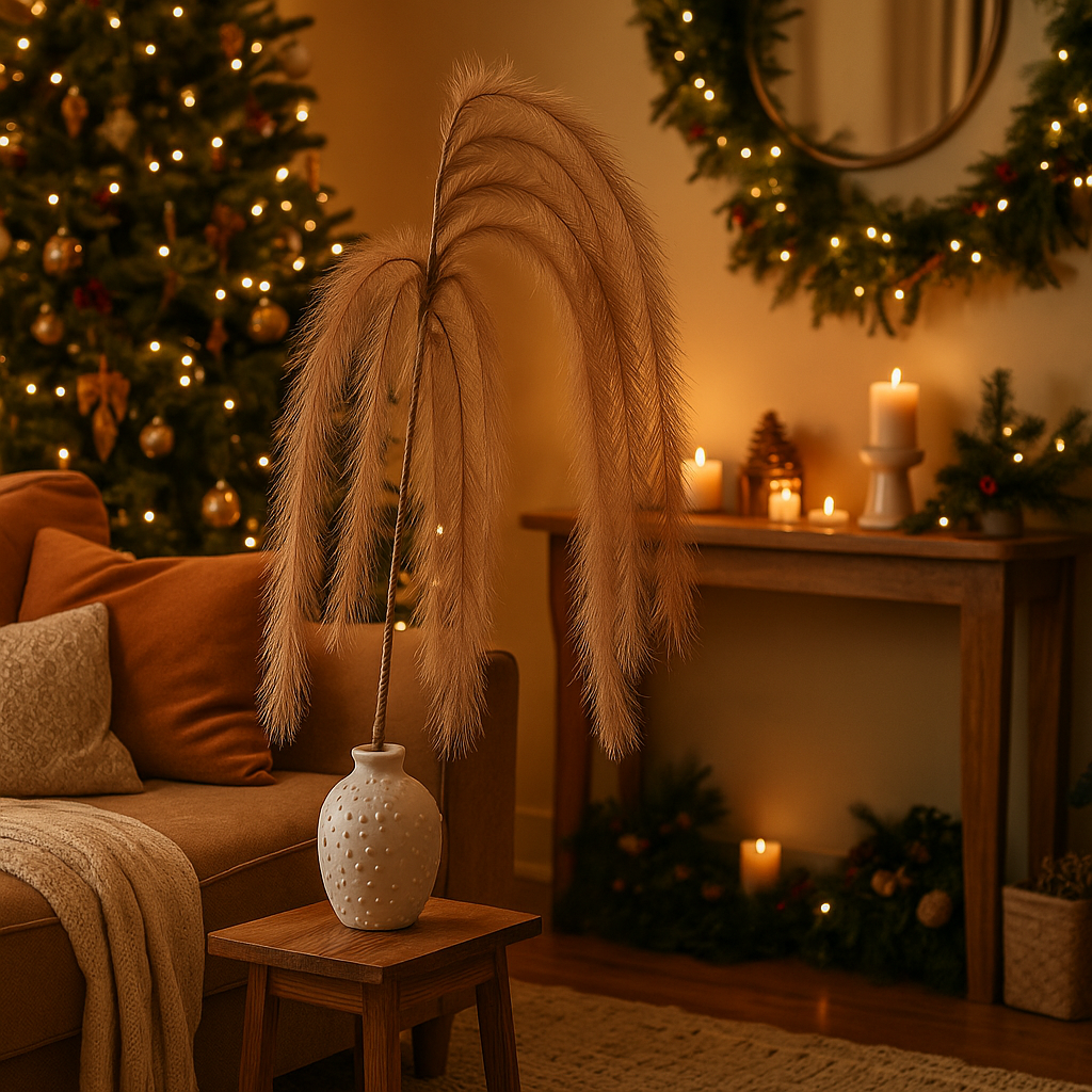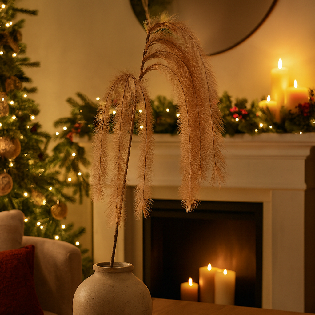 Ramo con Piume Marrone Chiaro per decorazioni Interne ed Esterne h 130 cm set da 3