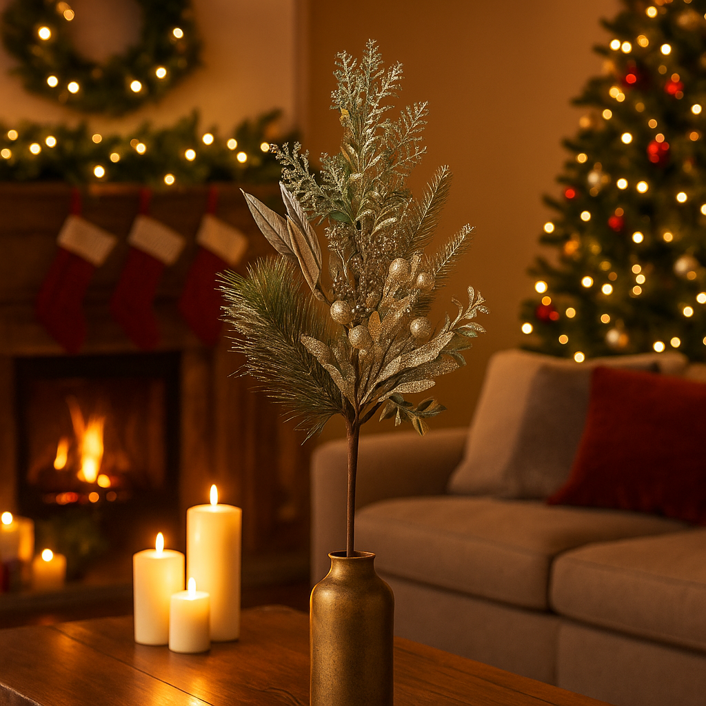 Ramo "Admiral" Oro con Bacche decorazione per interno da h 45 cm