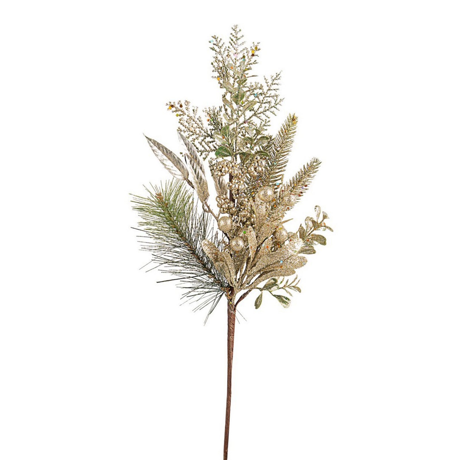 Ramo "Admiral" Oro con Bacche, realizzato per permettere decorazioni in stile moderno. Il ramo è composto da piume in poliestere di diverse sfumature ed è lungo 45 cm.